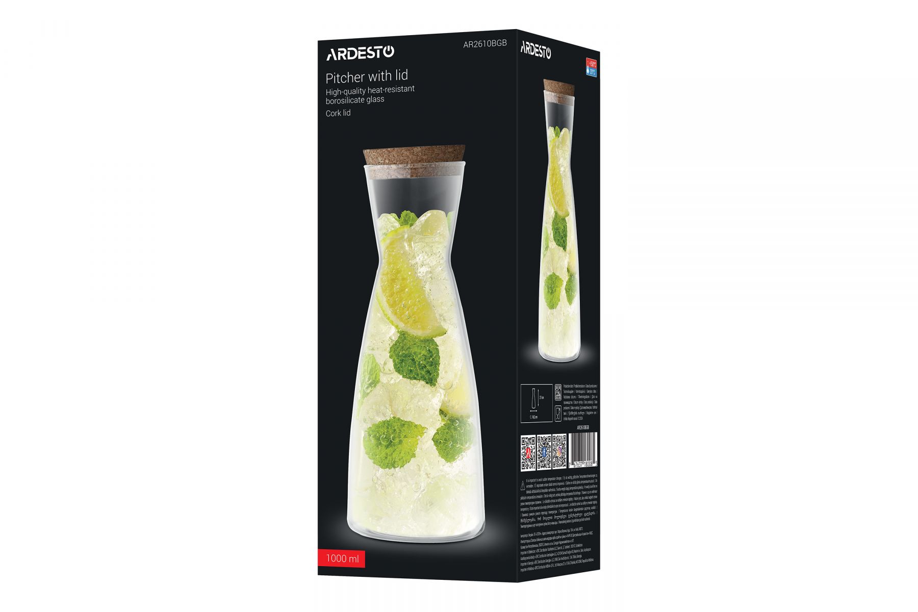 Графин з кришкою Ardesto 1000мл, боросилікатне скло, прозорий