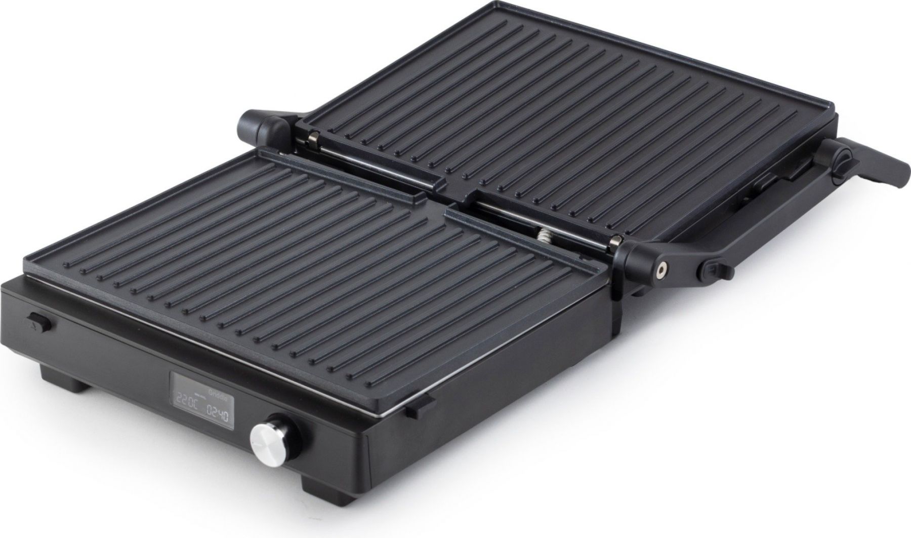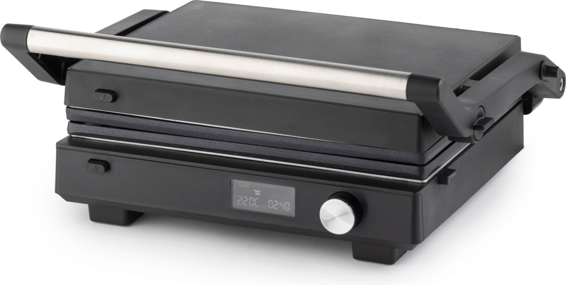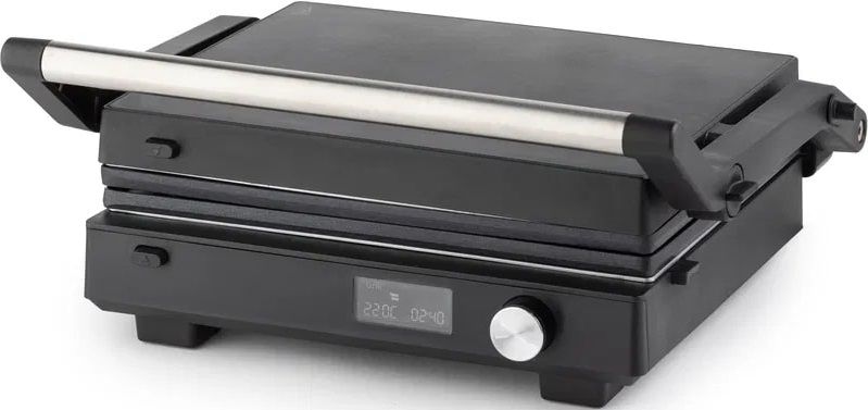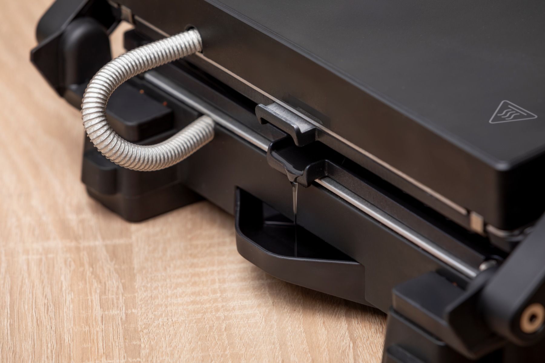 Oснащення:Вертикальне зберігання, Холодні ручки, Гумові ніжки, Відкриття на 180°, Захисний замок, Ручка для переносу, Піддон для масла, З'ємні пластини, Тефлонове покриття пластин