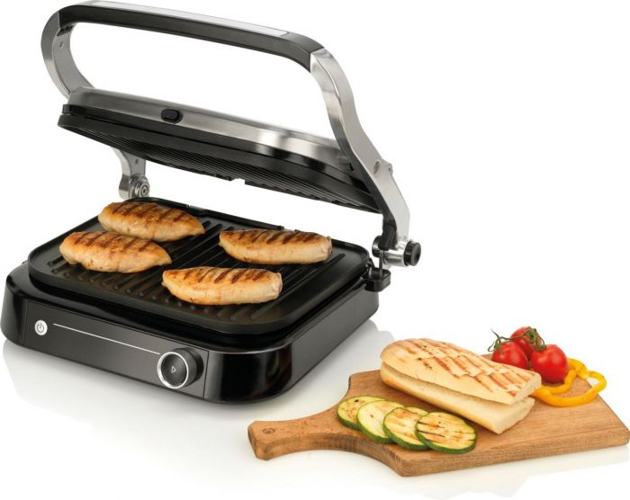 Смаження, запікання та приготування на грилі. Контактний гриль можна відрегулювати відповідно до товщини їжі, що на ньому готується. Крім того, верхню пластину гриля можна повністю відкинути назад, створивши другу поверхню для смаження на зразок відкритого гриля. Готуйте смачні та корисні страви на грилі. Мінімальний час приготування, інтенсивний і рівномірний розподіл тепла, прямий контакт з верхньою та нижньою гриль-пластинами зберігають поживну цінність та соковитість інгредієнтів, що готуються.