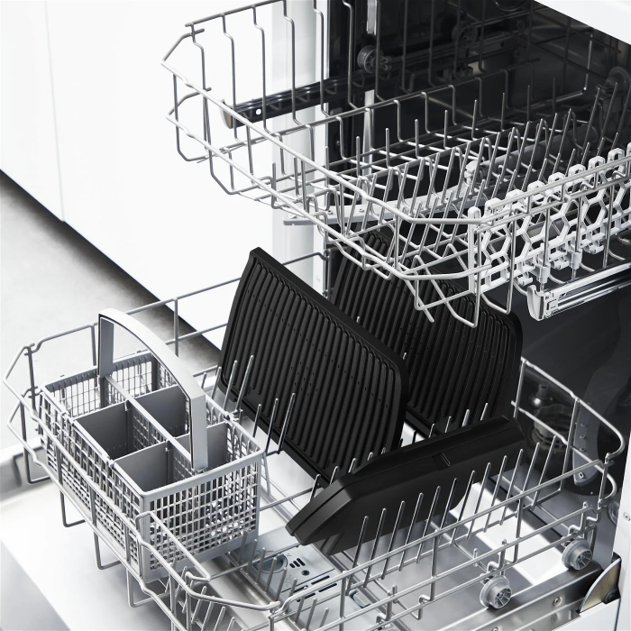 Oснащення:Антипригарне покриття, Піддон для жиру, індикатор нагріву, Зйомні пластини безпечні для посудомийної машини, Індикатор ступеня прожарювання, Знімні пластини, Кут нахилу панелі - 7°, Автоматичний сенсор приготування, Автоматичний сенсор вимірювання товщини продукту, Звукові сигнали