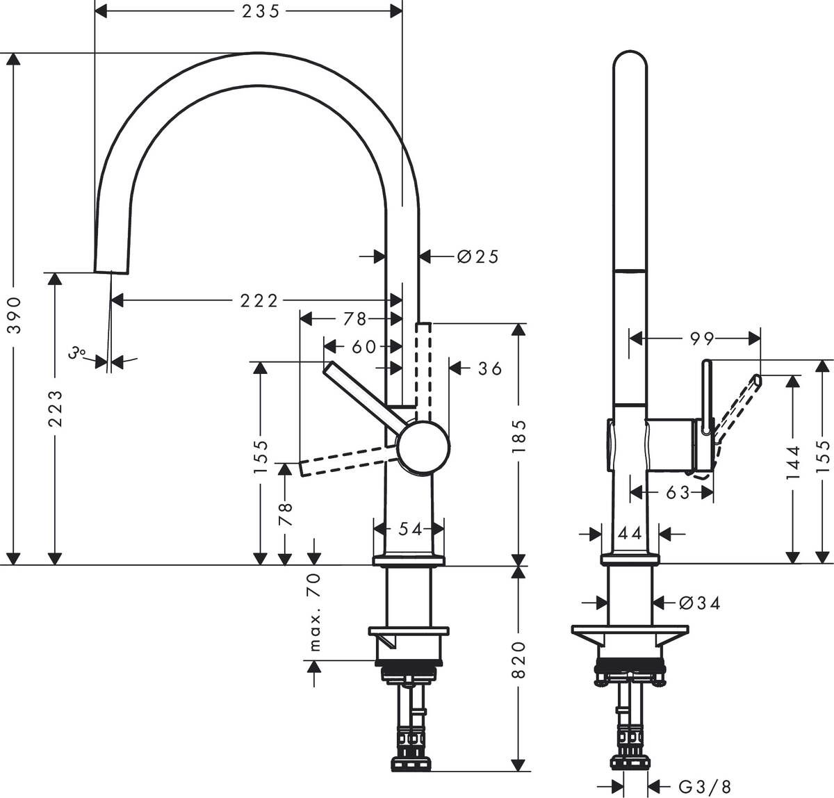 Змішувач Hansgrohe Talis M54 для кухонної мийки/72804670/220мм, 1-струменевий/поворотний/важіль збоку/форма округла/чорний матовий