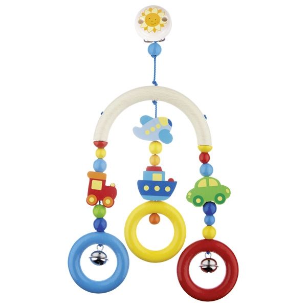 Мобайл із натурального дерева «Мандрівник» він німецького бренду Heimess для малюків. Іграшка має спеціальну надійну кліпсу для розташування над дитячою коляскою. Її можна розглядати, хапати, гризти, тягнути тощо. Завдяки мобайлу дитина познайомиться з різноманітними видами транспорту: машиною, потягом, літаком, кораблем, що кружлятимуться під сонечком. Мобайл прикрашений двома металевими дзвіночками для тренування слуху. Частини «Мандрівника» зроблені з натуральної деревини, яку просочують яскравими фарбами на водній основі. Металеві деталі не викликають алергії, а фарба безпечна і тримається дуже надійно.