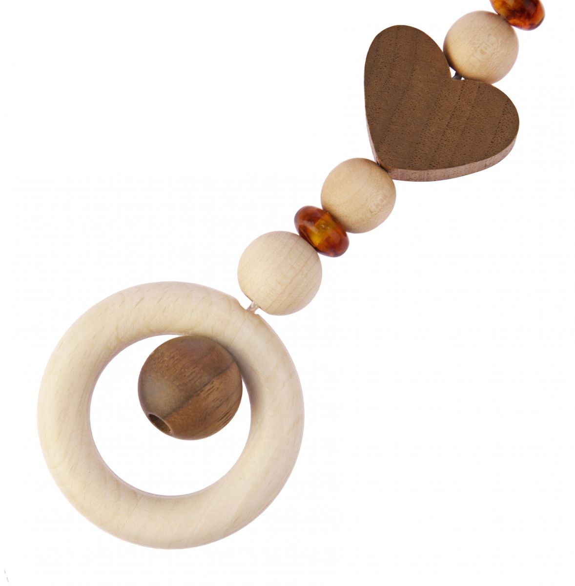 Даруйте вашій дитині любов і сонячне тепло від самого народження! Екологічна кліпса «Сердечко» від німецького бренду Heimess – аксесуар на ліжечко або коляску найменших. Брязкальце складається з натуральних дерев’яних елементів, намистин бурштину і металевої кліпси. Усі частини безпечні і оброблені дуже якісно. Бурштин – дуже сприятливо впливає на організм і допоможе дитині легше перенести прорізування зубів. Метал, з якого зроблений дзвіночок, гіпоалергенний, тож весь аксесуар в цілому – безпечний для здоров’я дитини. Дерев’яний аксесуар має і важливу розвиваючу функцію - допоможе малюку розвити зір, моторику рук та сприйняття кольору.
