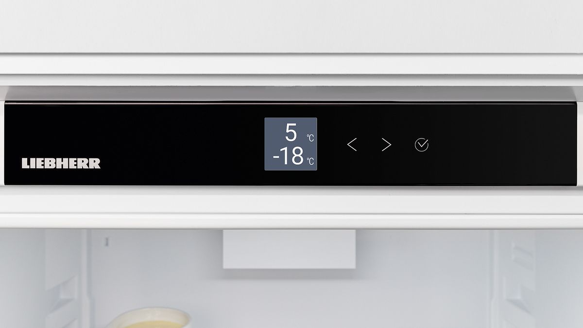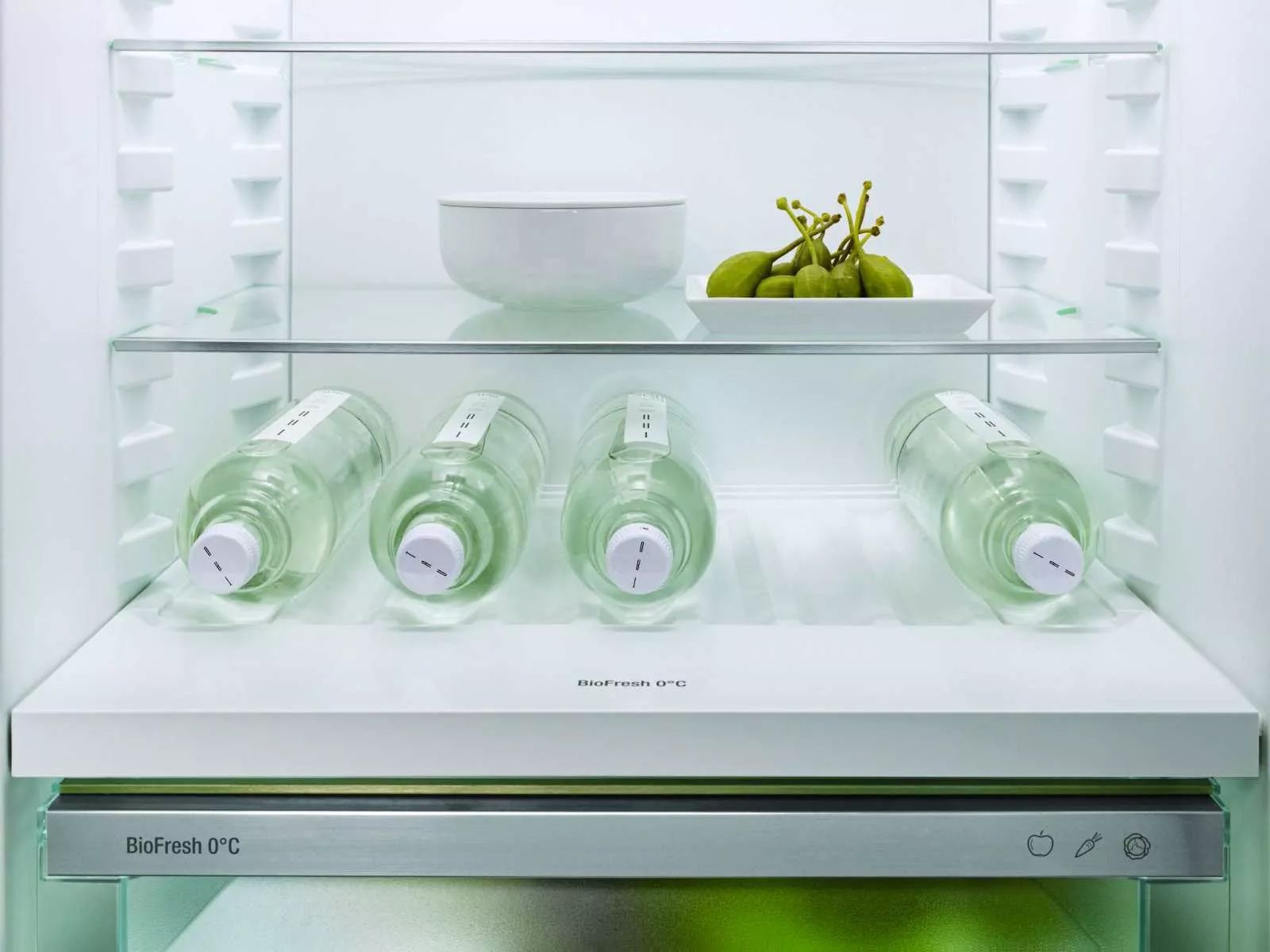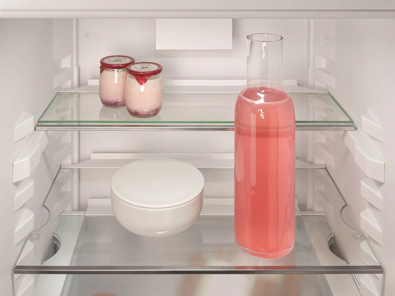 Вбудована холодильна камера Liebherr IRBD5120 оснащена зоною BioFresh з двома спеціалізованими відділеннями: Fruit & Vegetable для збереження овочів і фруктів свіжими завдяки високій вологості при температурі близько 0 °C, та Meat & Dairy, що забезпечує ідеальні умови для м’яса і молочних продуктів. Система SoftSystem забезпечує плавне закривання дверей, а TouchControl дозволяє легко налаштовувати параметри. LED-освітлення гарантує яскраву видимість, а енергоефективність відповідає сучасним стандартам.