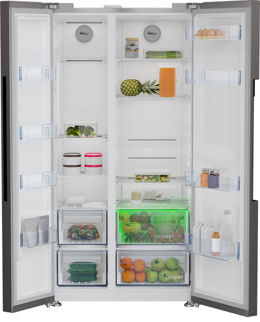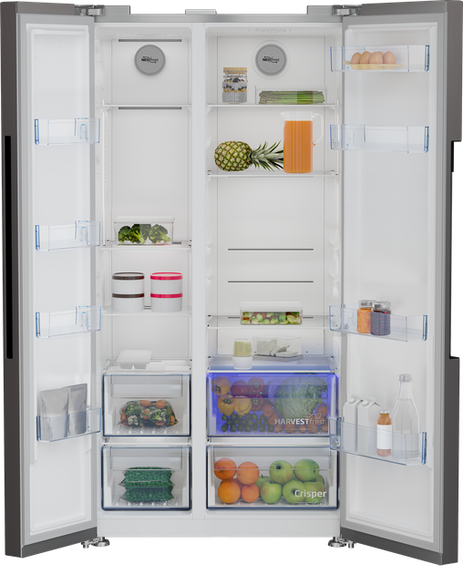 Холодильник Beko SBS, 179x91x71, xолод.відд.-368л, мороз.відд.-190л, 2дв., E, NF, дисплей, нерж