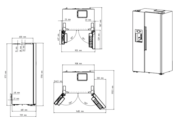 Холодильник SBS Neo Tools 179×91×71 см — місткий двокамерний Side-by-Side з об’ємом 558 л (368 л холодильна + 190 л морозильна). Технологія No Frost в обох камерах — без інею та ручного розморожування. Сенсорний дисплей на дверях, режими Super Cool / Super Freeze / Holiday. Стильний дизайн у кольорі нержавіюча сталь, LED-освітлення, широкі полиці та великі ящики. Ідеальний вибір для великої родини та любителів запасливих закупів.