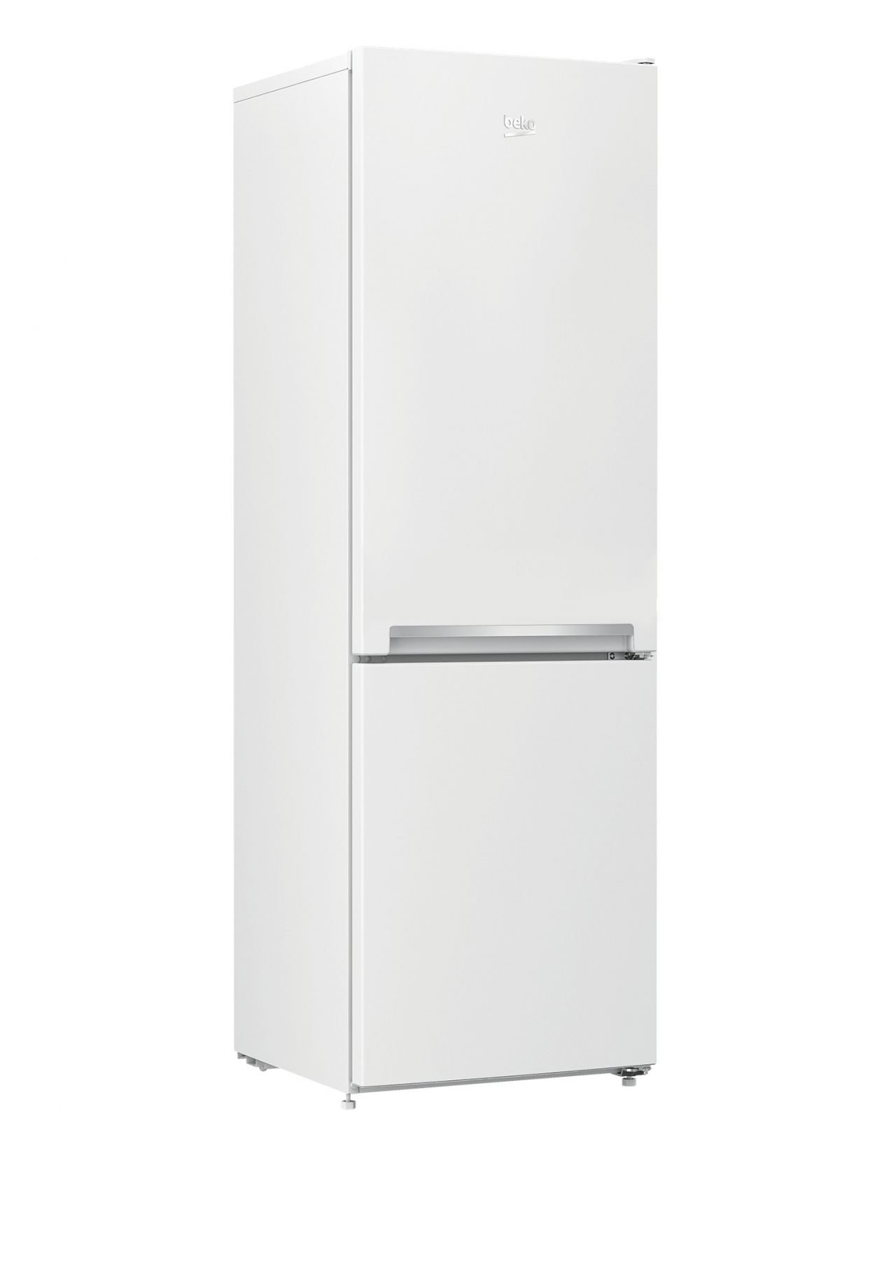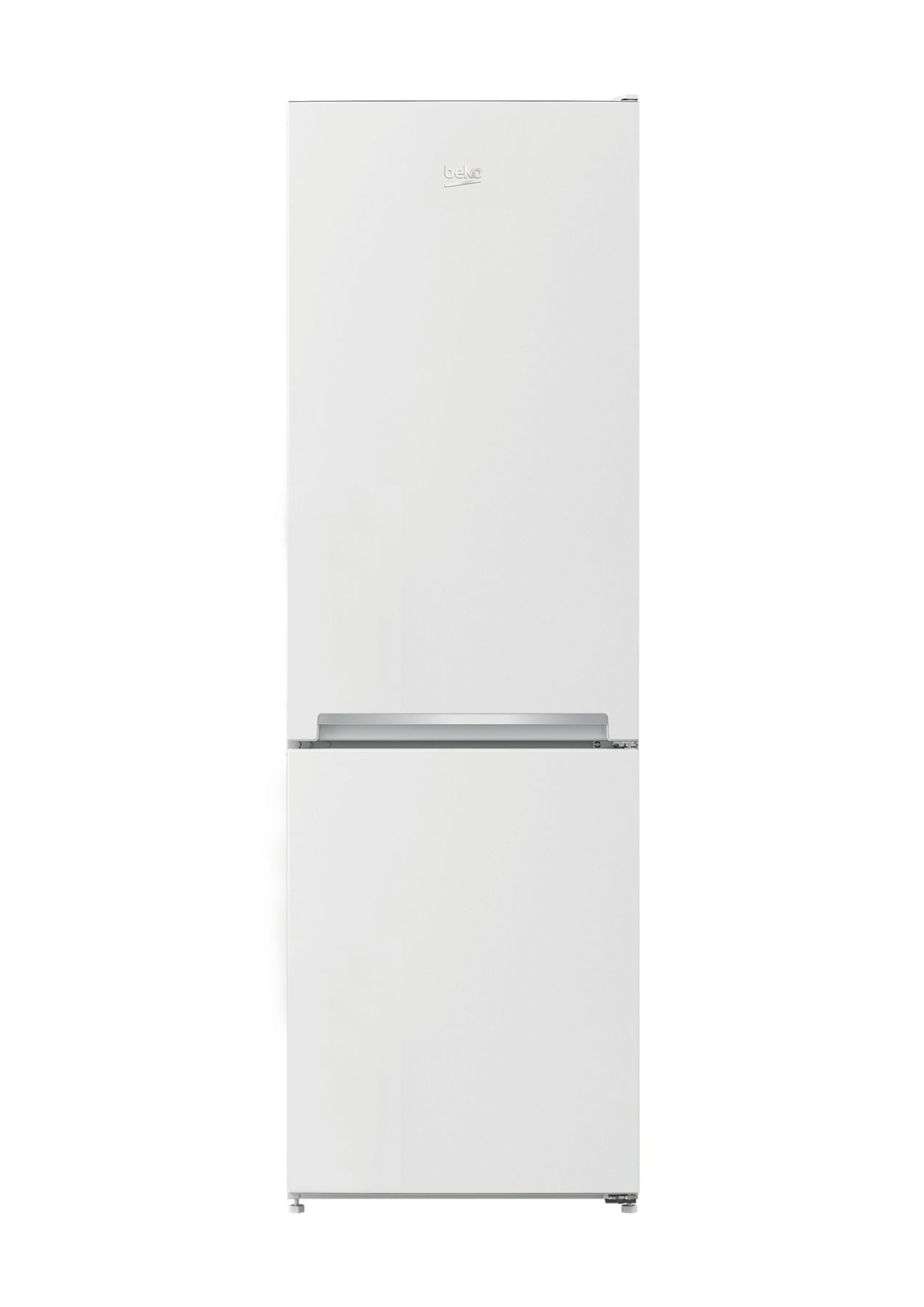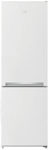 Beko RCSA270K40WN — компактний двокамерний холодильник з нижньою морозильною камерою та загальним об’ємом 262 л. Статична система охолодження та технологія MinFrost зменшують утворення льоду в морозильній камері та скорочують частоту розморожування. Усередині розміщено LED-освітлення та скляні полиці підвищеної міцності. Формат і габарити зручні для розміщення на невеликих кухнях, холодильник працює тихо та має реверсивні дверцята для комфортного встановлення.