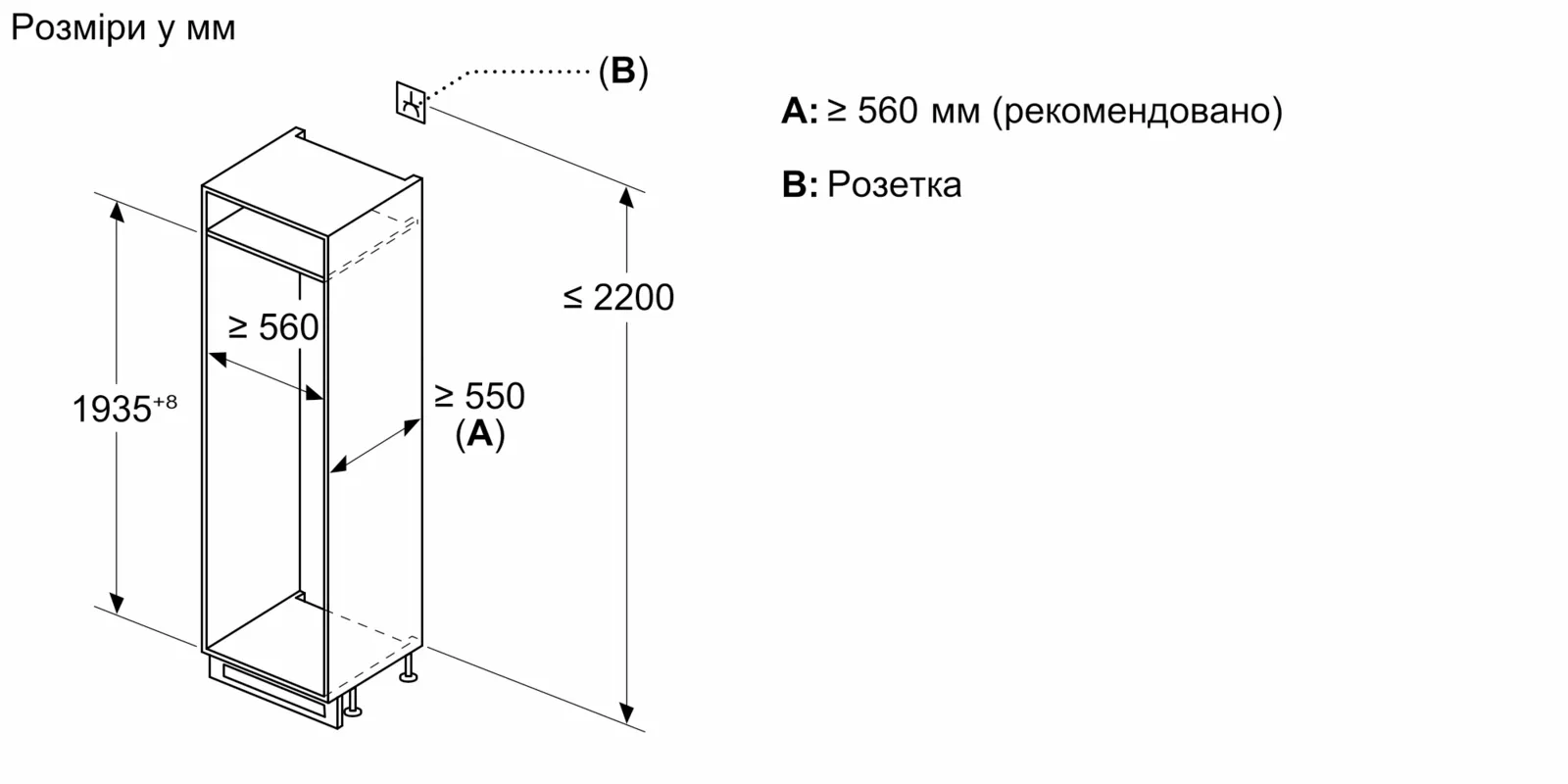 Розміри для вбудовування ( ВхШхГ ):194 x 56 x 55