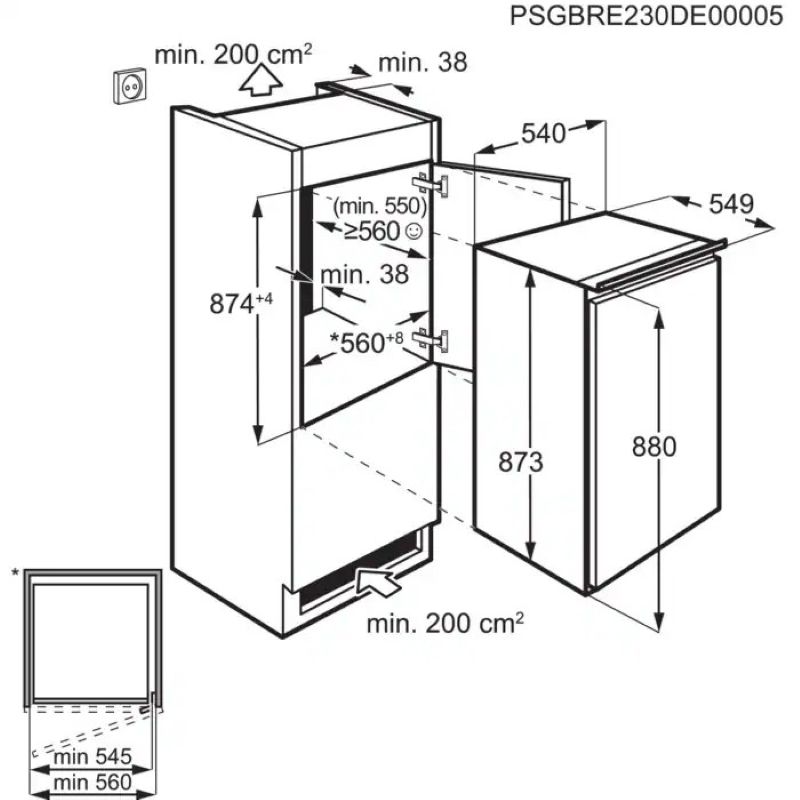 Холодильник Electrolux вбудований з верхн. мороз., 87.3x55х55, холод.відд.-109л, мороз.відд.-14л, 1дв., E, ST, білий