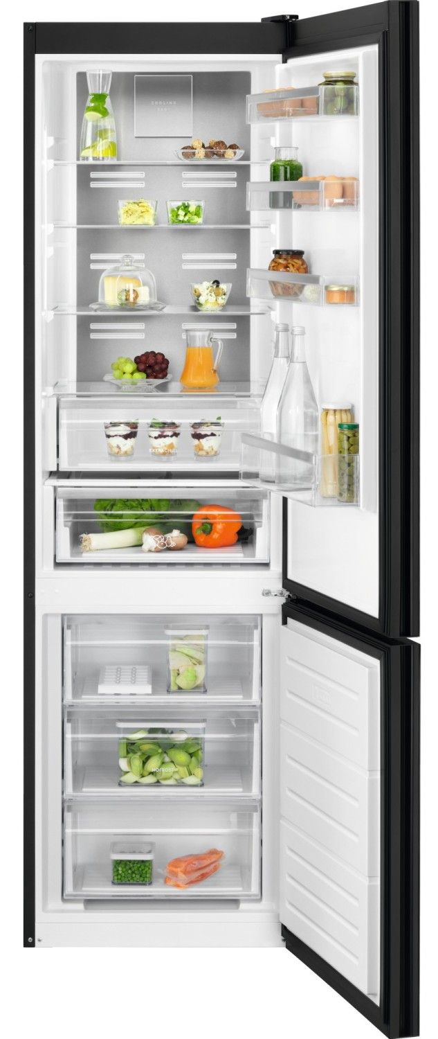 Холодильник Electrolux з нижн. мороз., 201x60х66, холод.відд.-244л, мороз.відд.-94л, 2дв., E, Combi, інв., диспл внутр., зона св-ті, чорний (скло)
