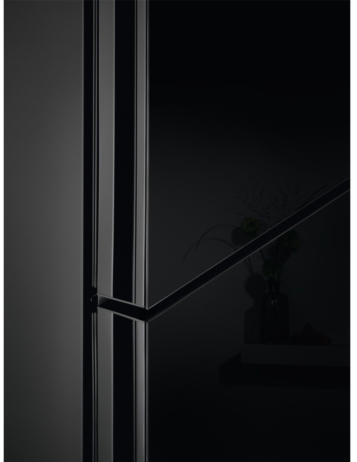 Холодильник Electrolux LNT7ME36K2 поєднує стильний дизайн із чорним склом та продумані технології збереження продуктів. Система Cooling 360° забезпечує рівномірний розподіл холодного повітря по всьому об’єму. Технологія TwinTech® No Frost підтримує оптимальний рівень вологості та запобігає утворенню льоду. Інверторний компресор працює стабільно та тихо. Висувна зона Extra Chill ідеально підходить для зберігання м’яса та сирів.