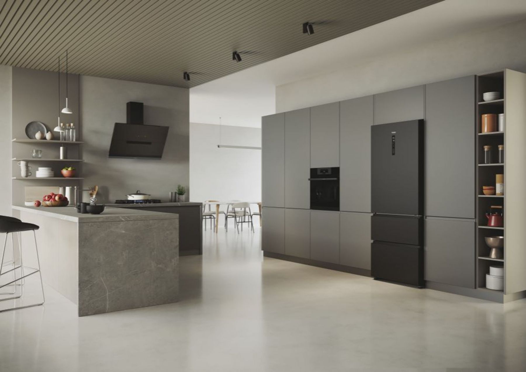 Haier HTR5719ENPT — це багатодверний холодильник преміум-класу з інверторним компресором Dual Inverter, який забезпечує тиху та енергоефективну роботу. Загальний об’єм 528 літрів дозволяє зберігати велику кількість продуктів, а технологія Total No Frost Fresher Techs® підтримує оптимальний рівень вологості та запобігає утворенню інею. Функції швидкого охолодження та заморожування, зона свіжості My Zone, а також LED-освітлення Day Light роблять користування зручним та ефективним. Електронне керування з дисплеєм на дверцятах дозволяє легко налаштовувати температуру, а акустичний сигнал попередить про відчинені двері. Стильний чорний дизайн з інтегрованими ручками гармонійно впишеться в сучасний інтер'єр кухні.