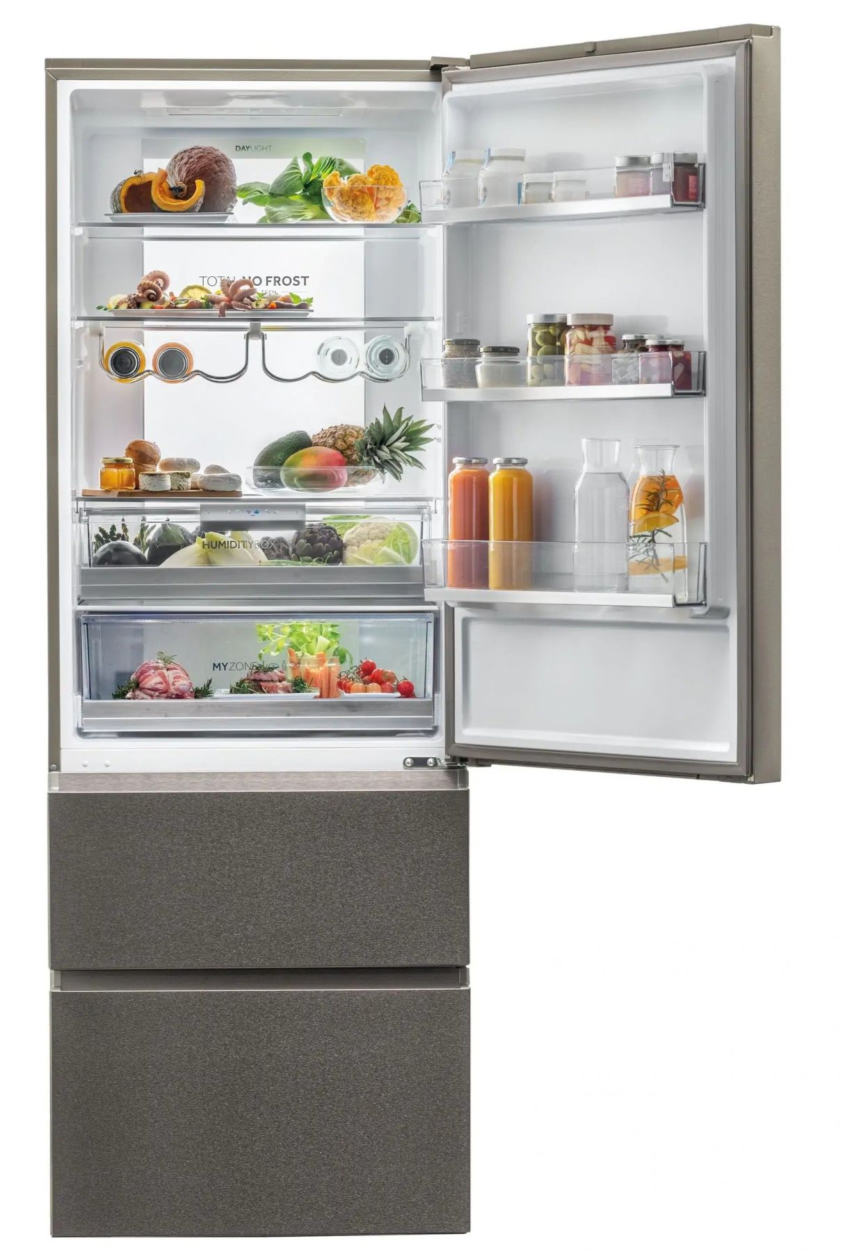 Інноваційні 3-дверні холодильники Haier - це ідеальне поєднання привабливого дизайну та практичної функціональності з найсучаснішими технологіями. Це інтелектуальні, енергоефективні та надійні прилади. Вони оснащені революційною технологією Fresher Techs, яка дозволяє зберігати продукти свіжими довше. Вам більше не доведеться обирати між свіжістю та зручністю.
