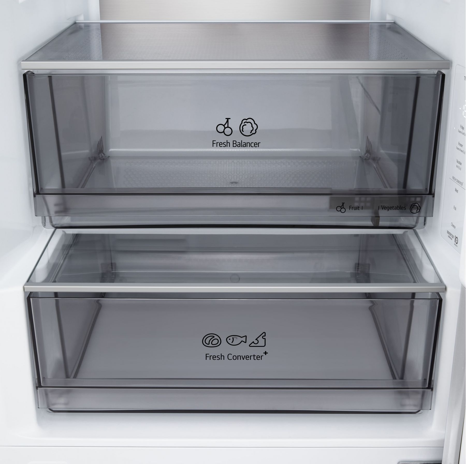 Функції / можливості:Експрес заморозка, Зона свіжості FRESH Balancer, Зона свіжості FRESH Converter, Експрес охолодження, Багатопотокова система охолодження Multi Air Flow, DoorCooling+, Сигнал відкритих дверцят, Технологія контролю напруги, LG ThinQ з керуванням через Wi-Fi, Інтелектуальна система діагностики Smart Diagnosis