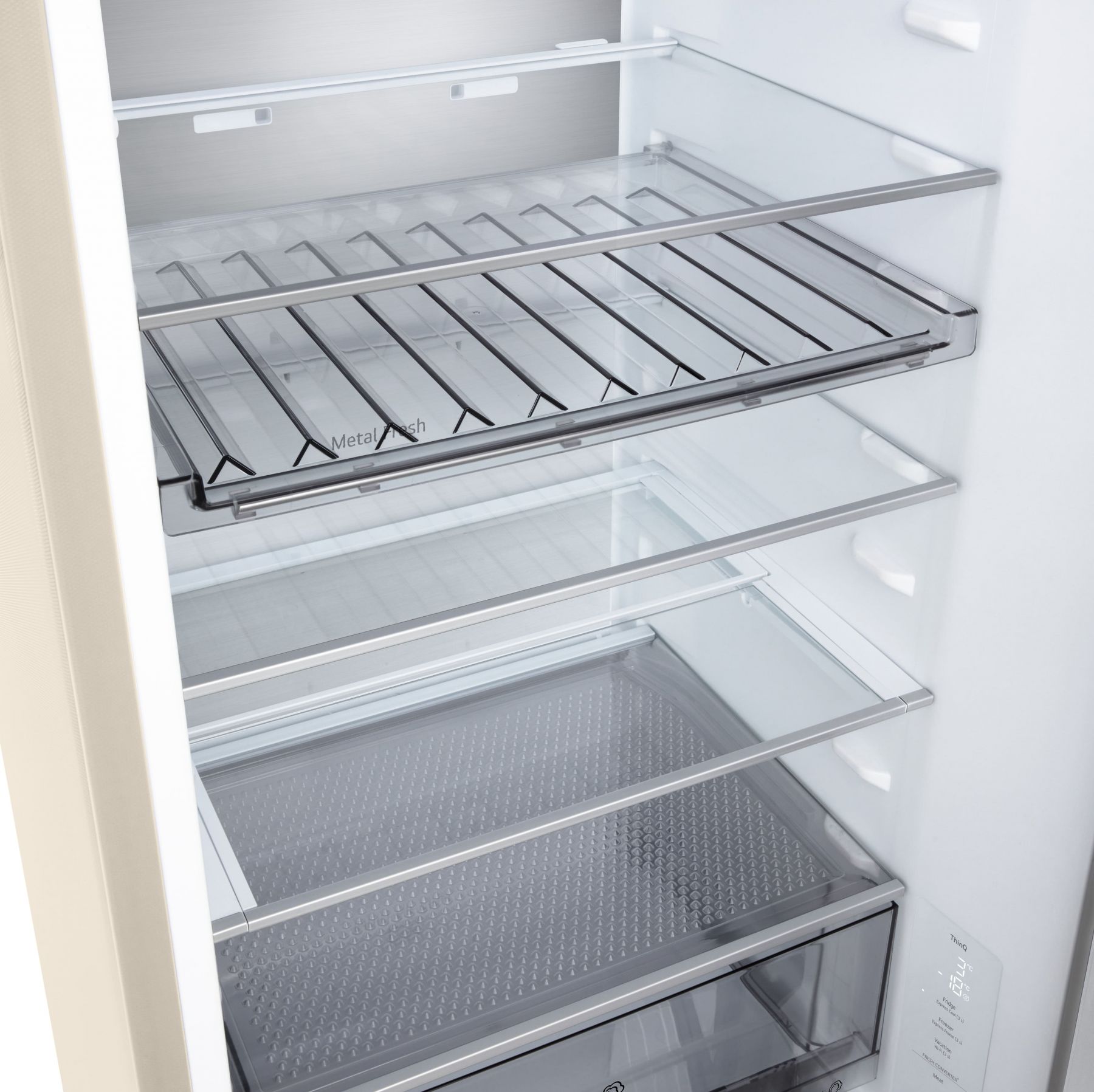 Холодильник LG з нижн. мороз., 203x60х68, холод.відд.-262л, мороз.відд.-113л, 2дв., E, NF, інв., диспл внутр., Fresh Сonverter, Metal Fresh, бежевий