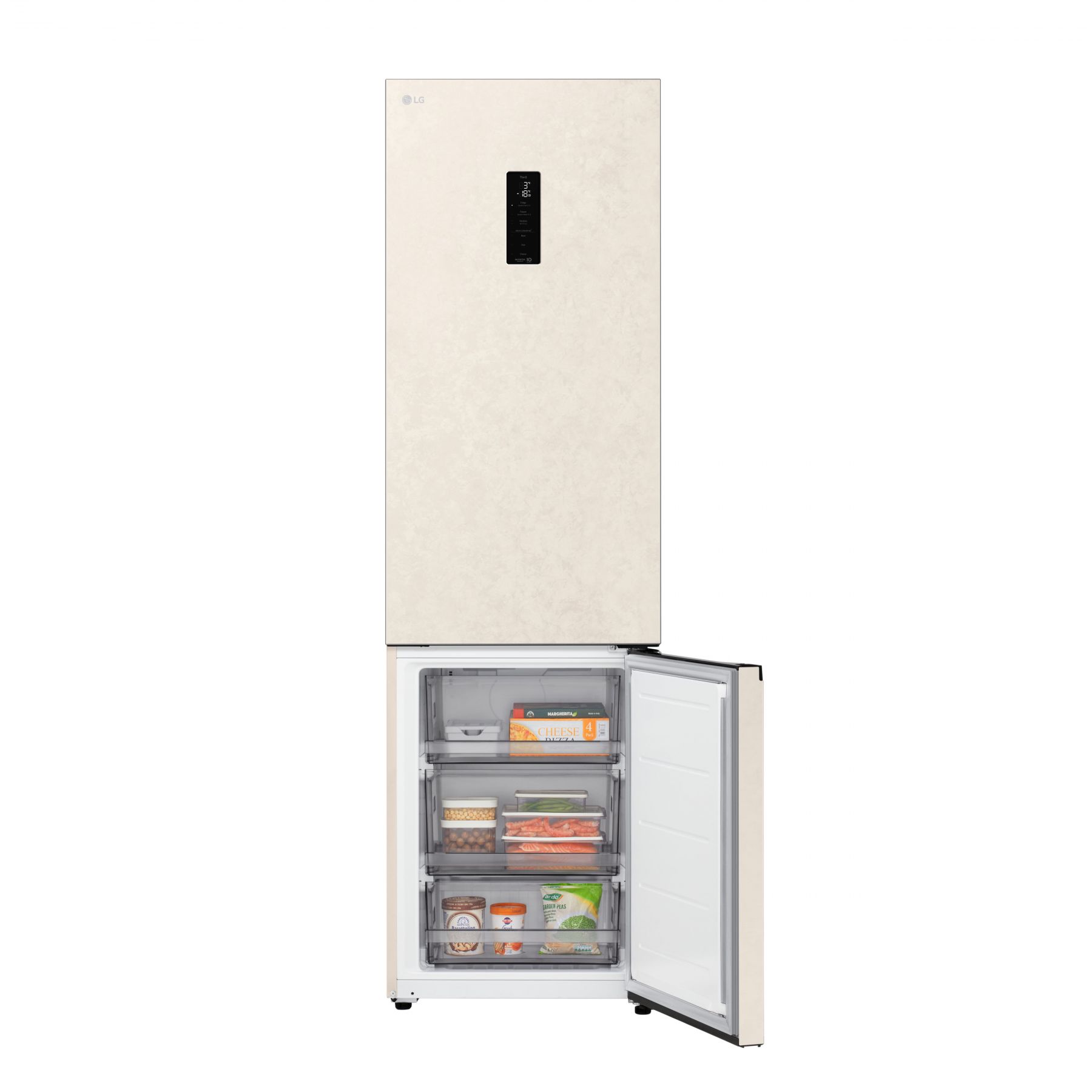 Холодильник LG з нижн. мороз., 203x60х68, холод.відд.-262л, мороз.відд.-113л, 2дв., E, NF, інв., диспл зовн., Fresh Сonverter, бежевий