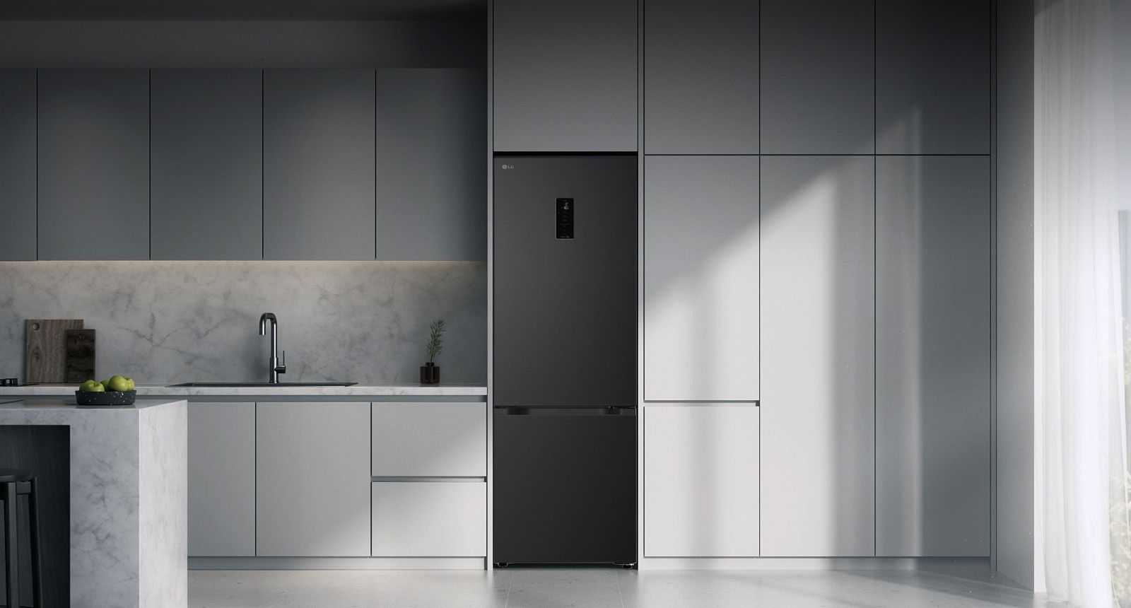 Холодильник LG з нижн. мороз., 203x60х68, холод.відд.-262л, мороз.відд.-113л, 2дв., E, NF, інв., диспл зовн., Fresh Сonverter, Metal Fresh, чорний