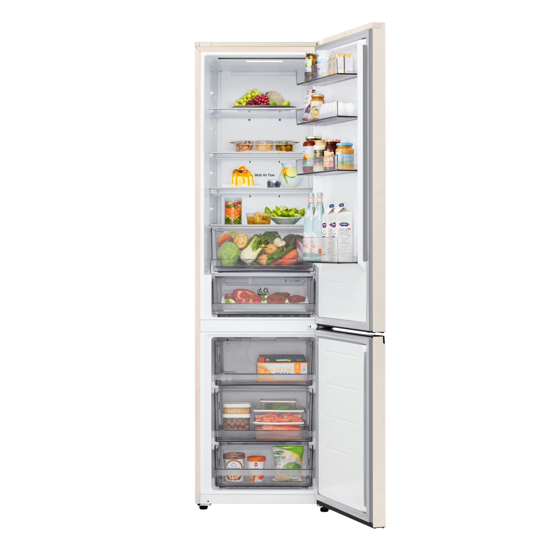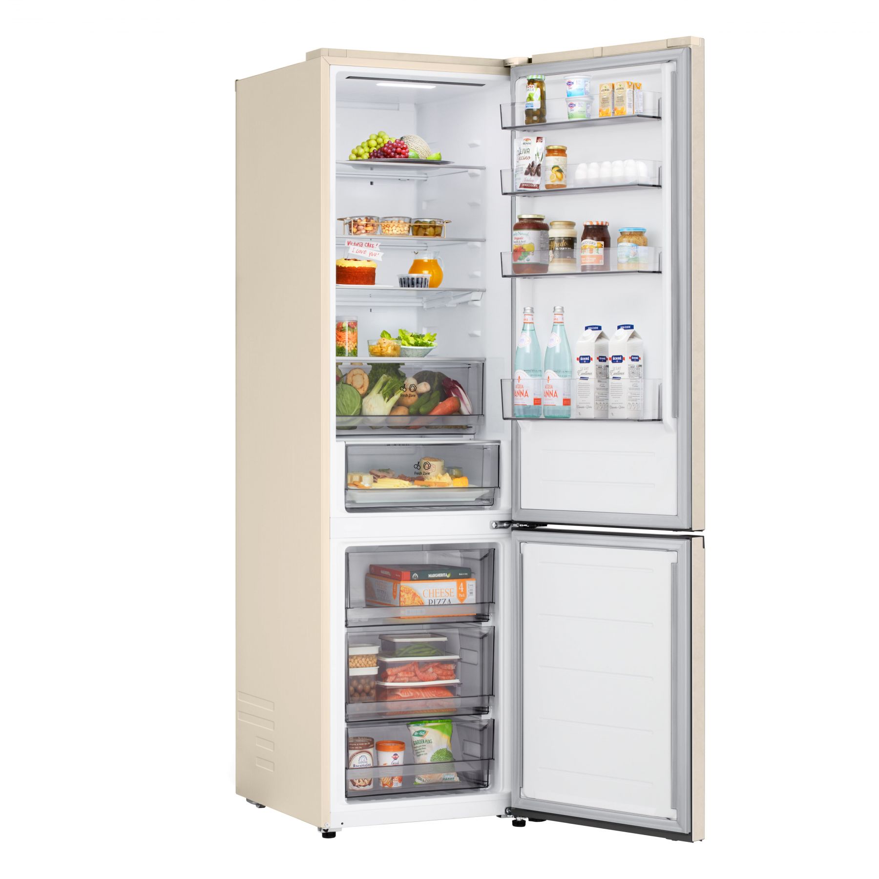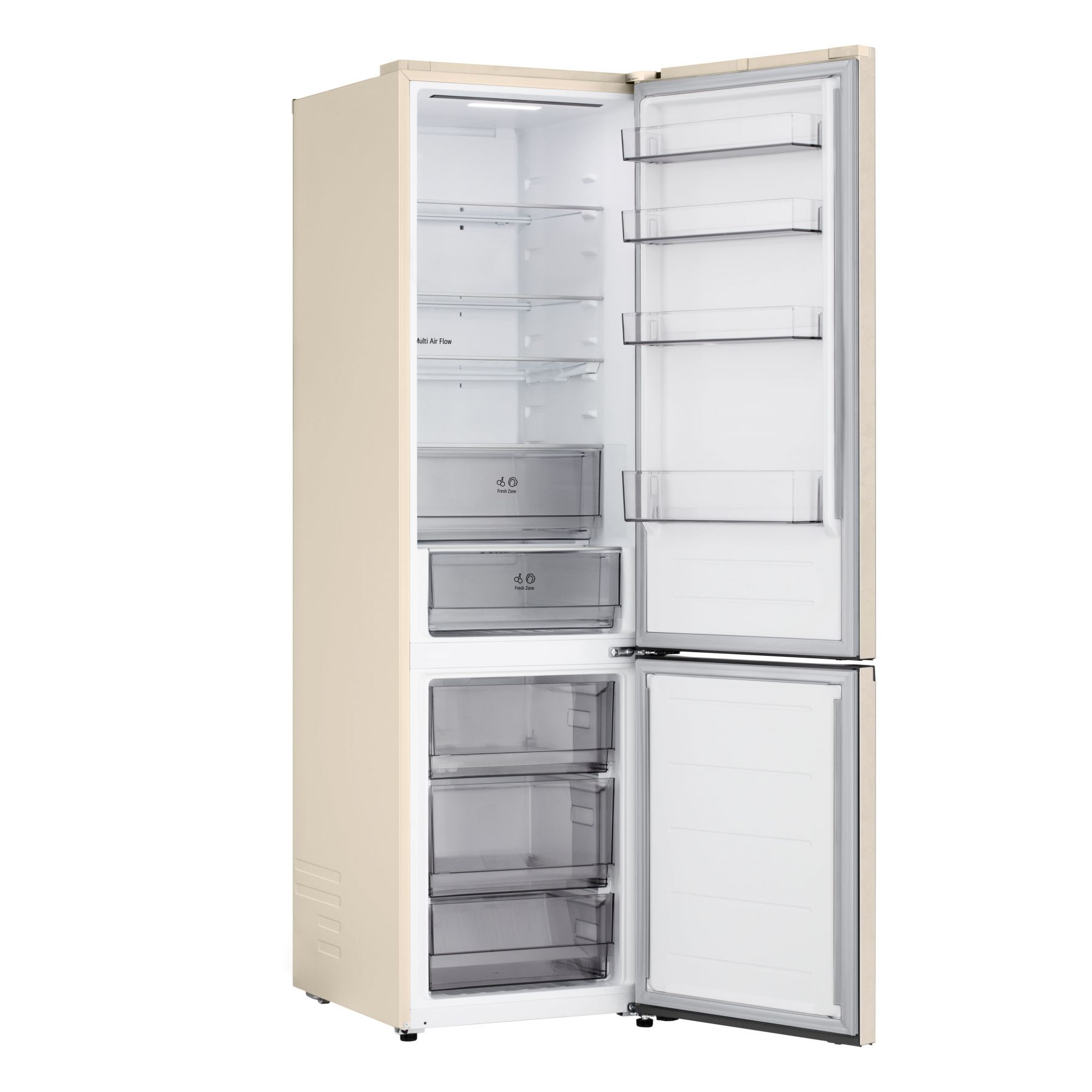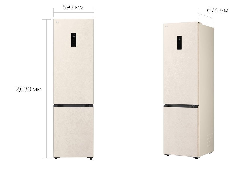 Холодильник LG з нижн. мороз., 203x60х68, холод.відд.-262л, мороз.відд.-113л, 2дв., E, NF, інв., диспл зовн., зона св-ті, бежевий