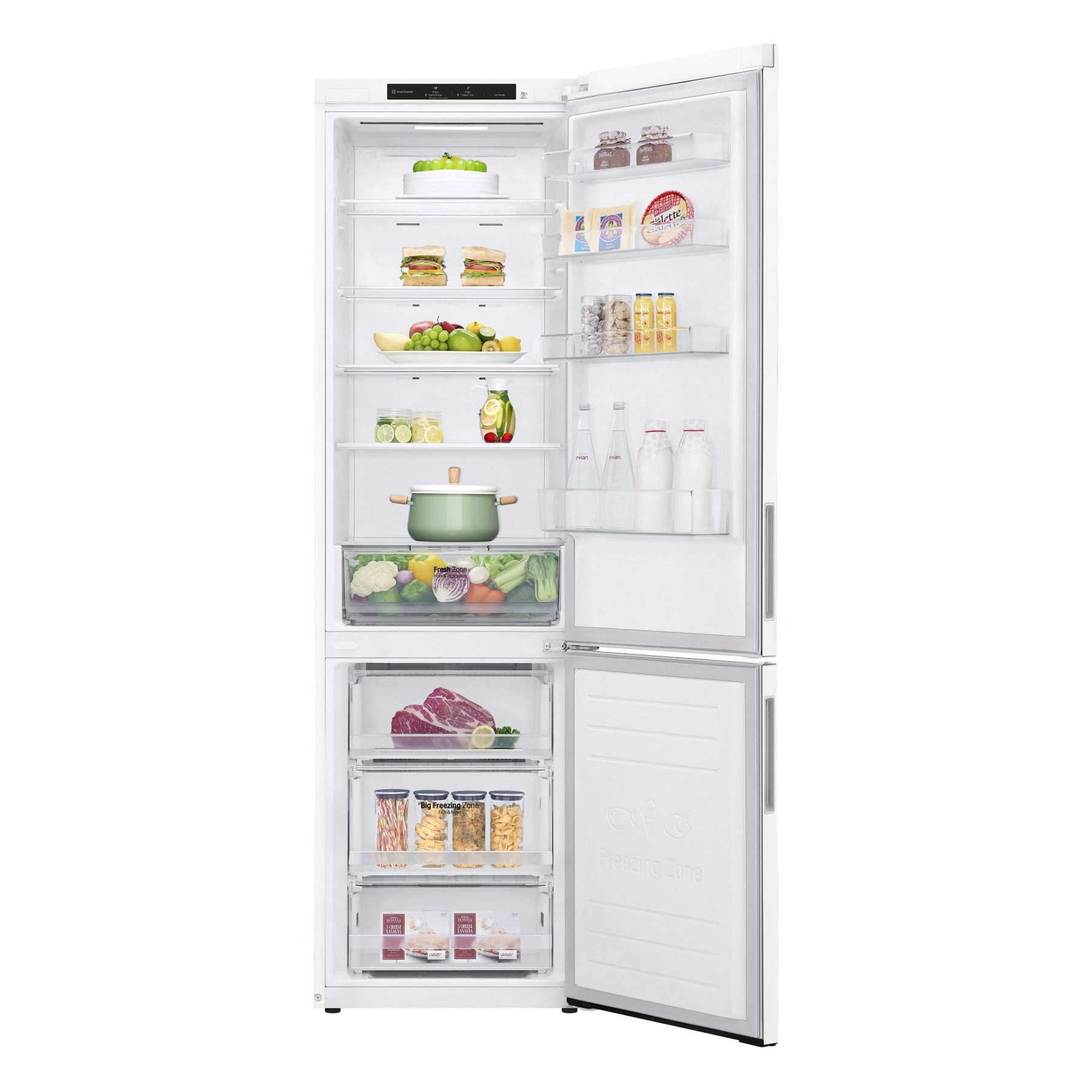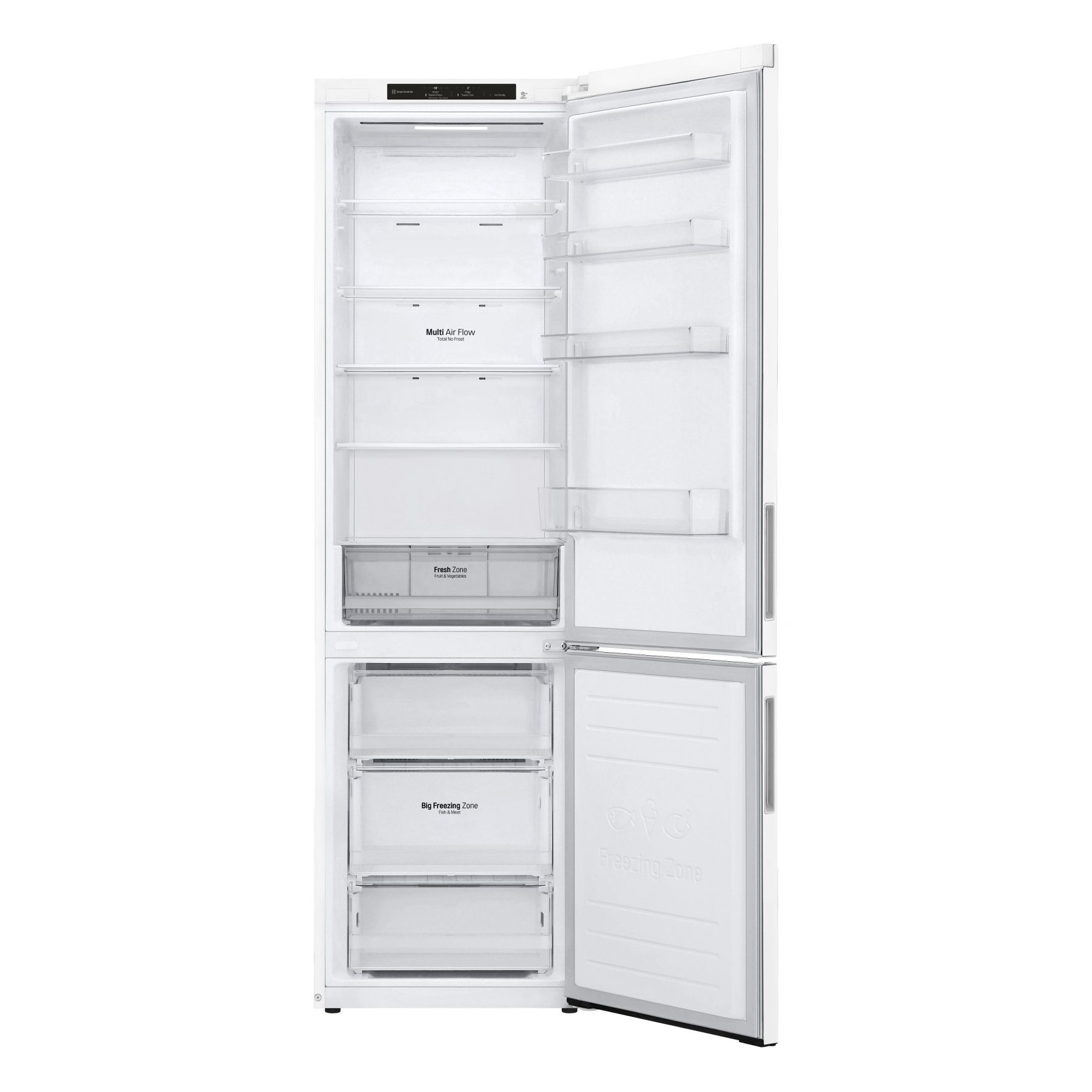 Холодильник LG з нижн. мороз., 203x60х68, холод.відд.-277л, мороз.відд.-107л, 2дв., А++, NF, інв., диспл внутр., зона св-ті, білий