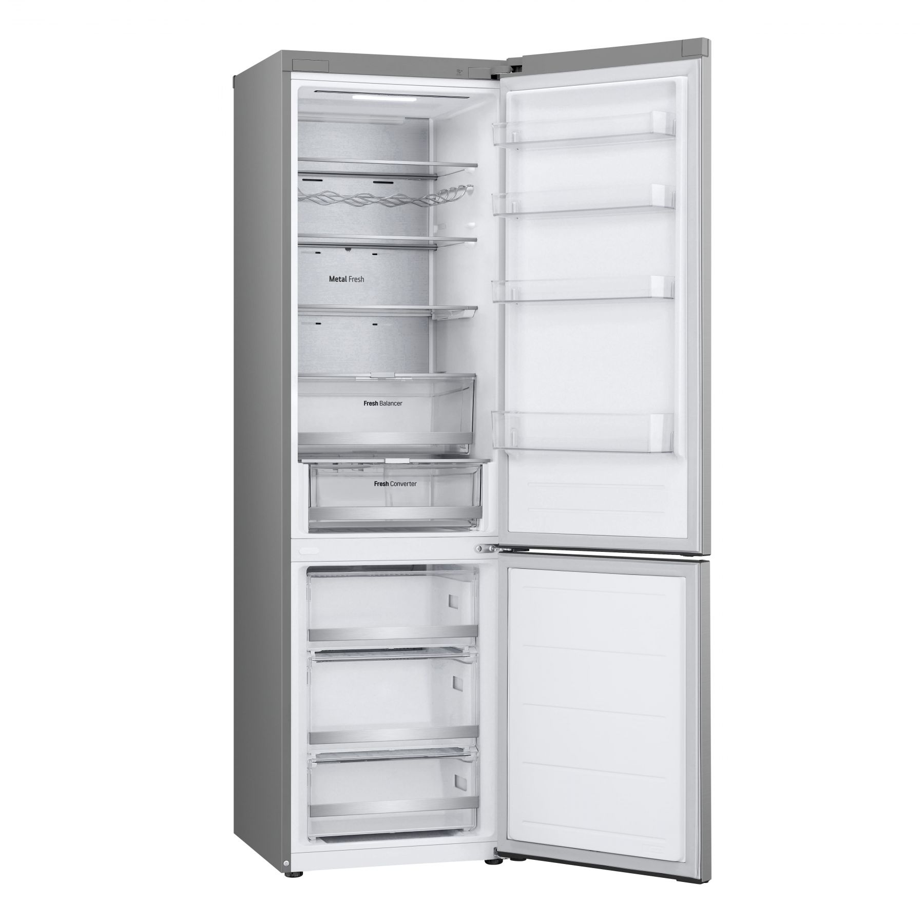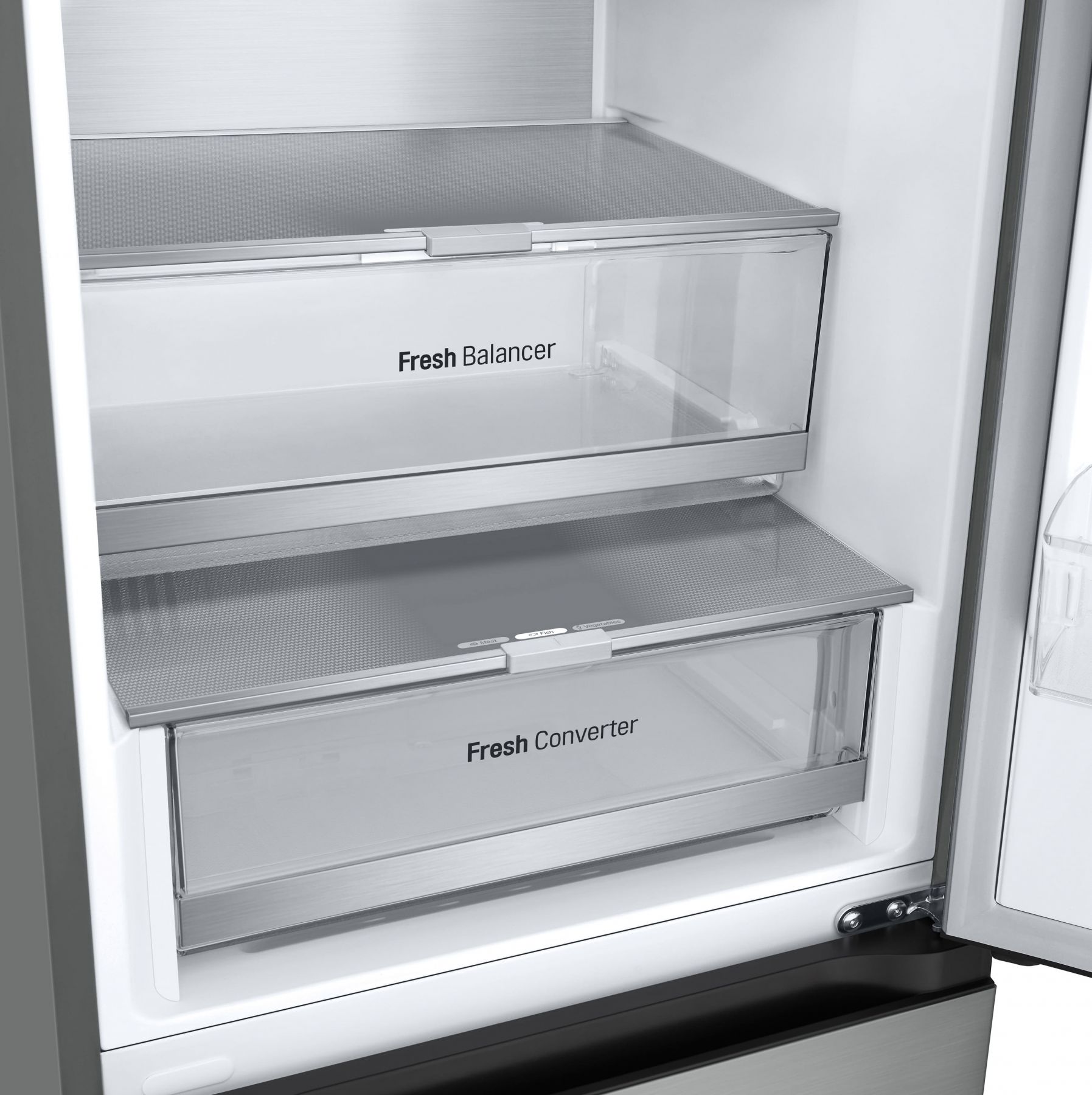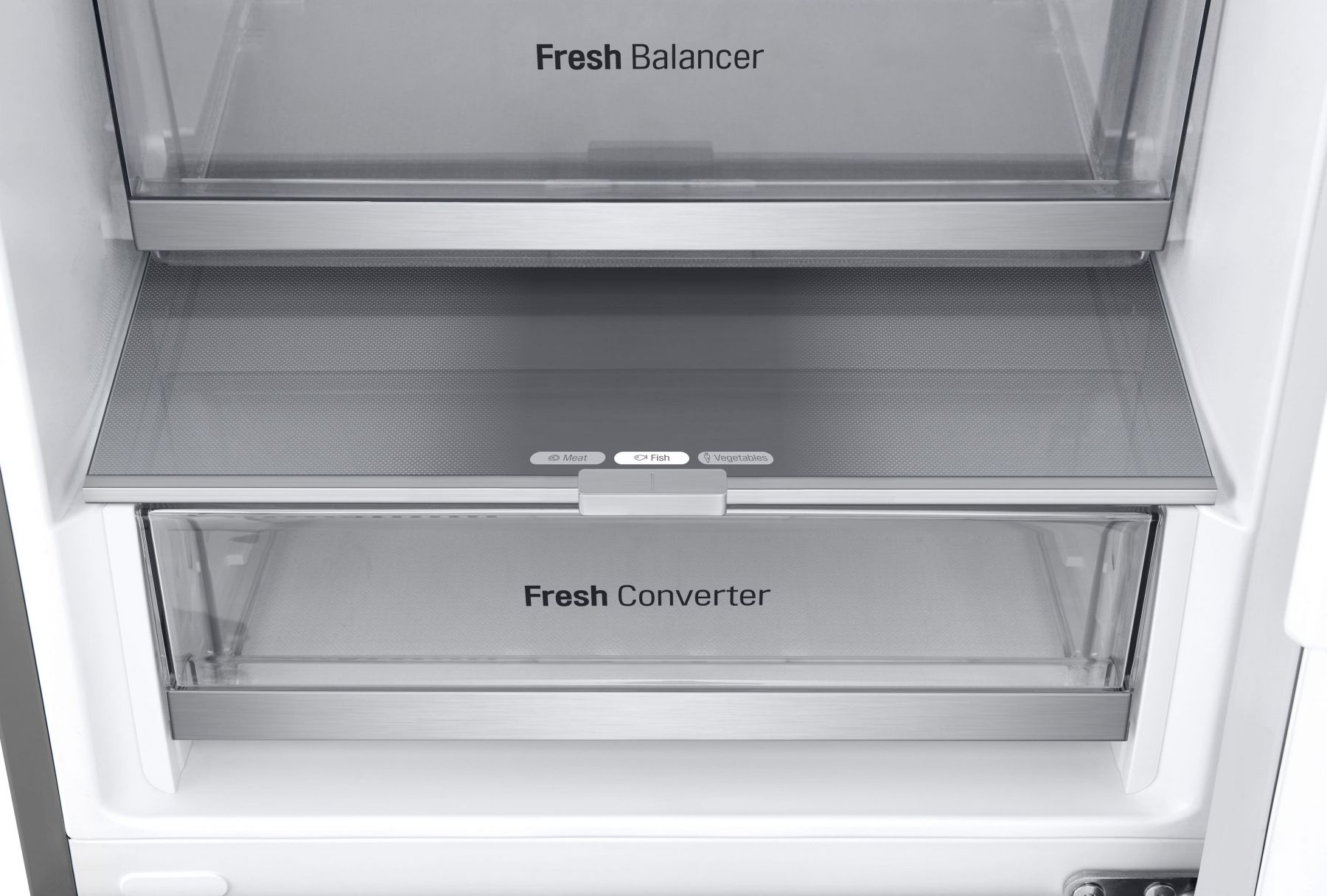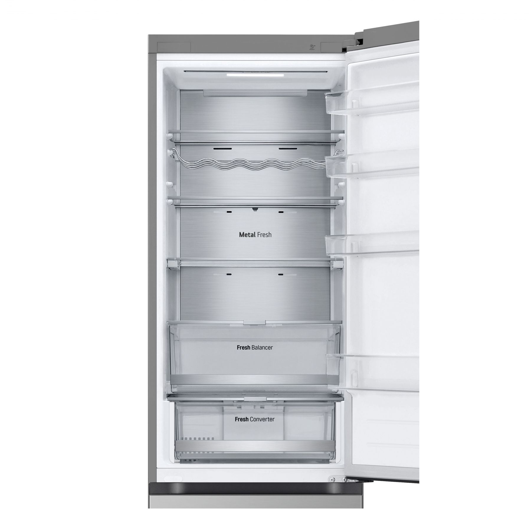 Холодильник LG з нижн. мороз., 203x60х68, холод.відд.-277л, мороз.відд.-107л, 2дв., А++, NF, інв., диспл зовн., Fresh Сonverter, Metal Fresh, сріблястий