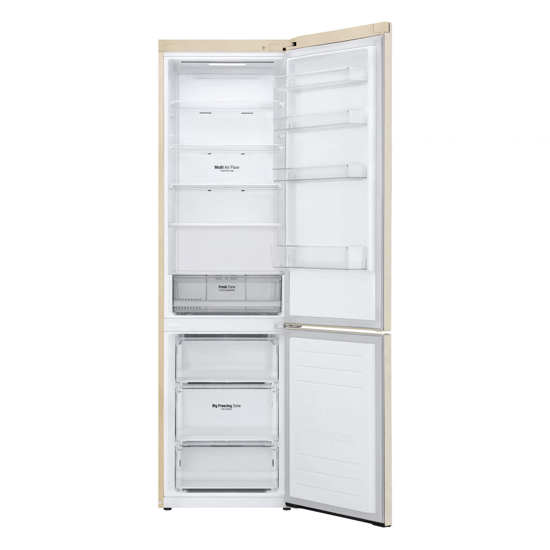 Холодильник LG з нижн. мороз., 203x60х68, холод.відд.-277л, мороз.відд.-107л, 2дв., А++, NF, інв., диспл зовн., зона св-ті, бежевий