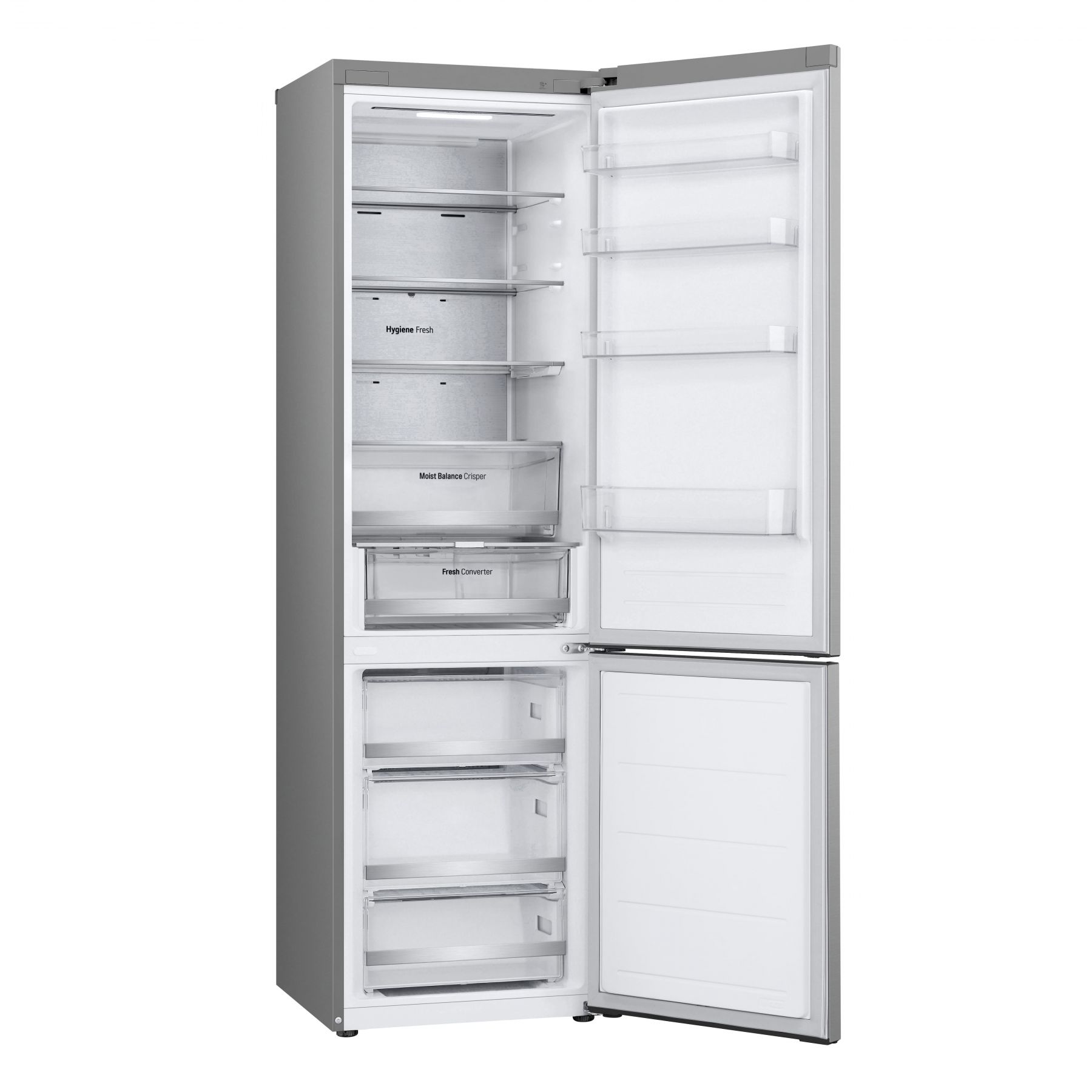 Холодильник LG з нижн. мороз., 203x60х68, холод.відд.-277л, мороз.відд.-110л, 2дв., А++, NF, інв., диспл зовн., Metal Fresh, сріблястий