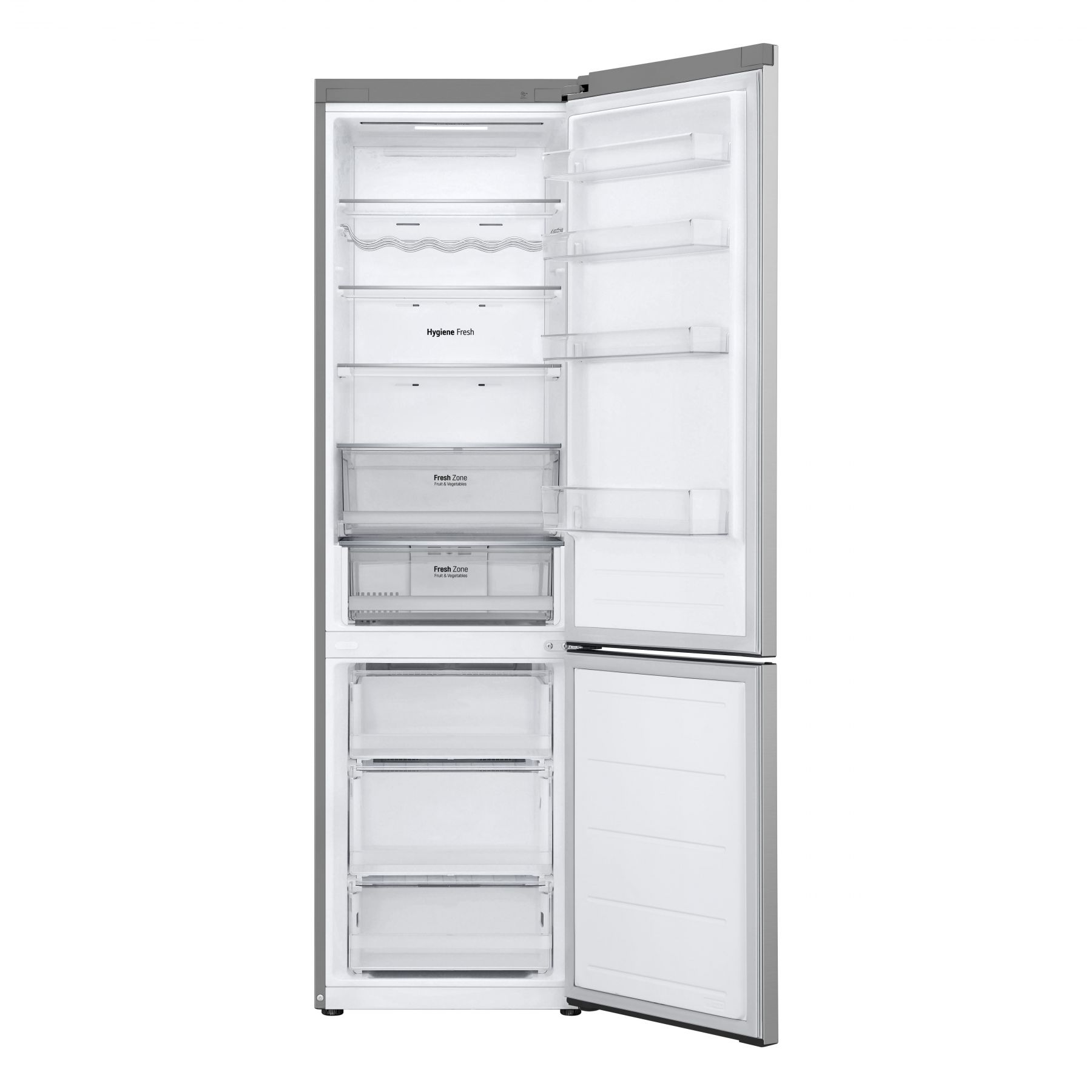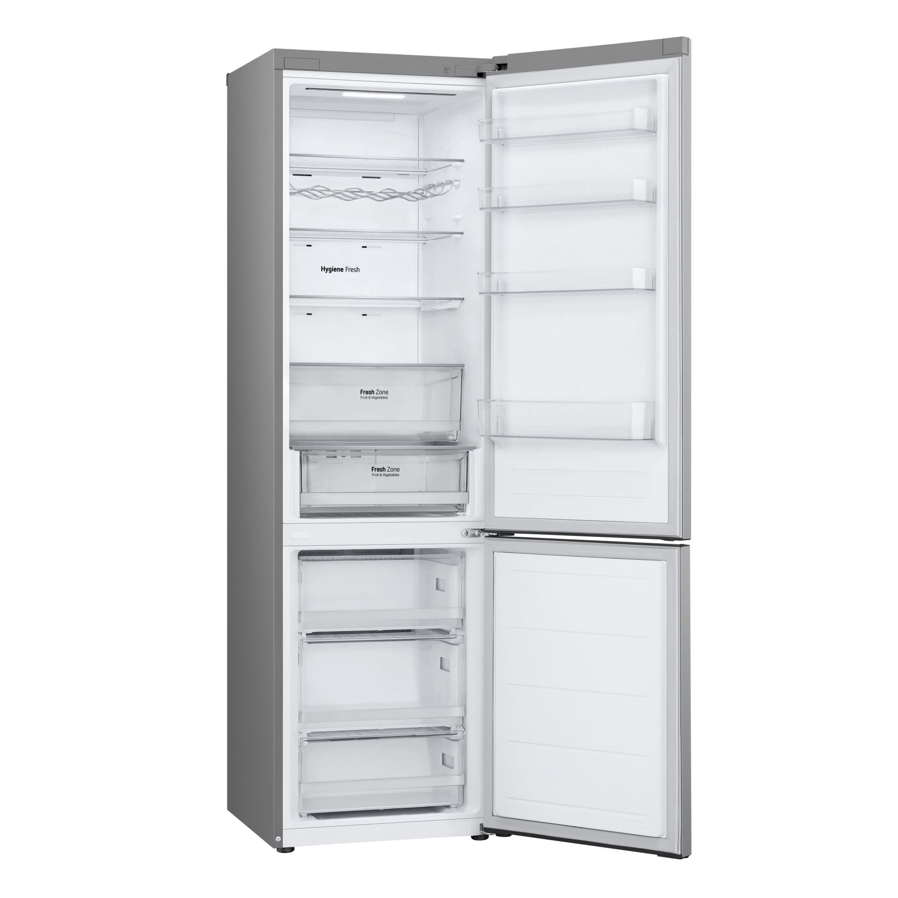 Холодильник LG з нижн. мороз., 203x60х68, холод.відд.-277л, мороз.відд.-110л, 2дв., А++, NF, інв., диспл зовн., зона св-ті, сріблястий