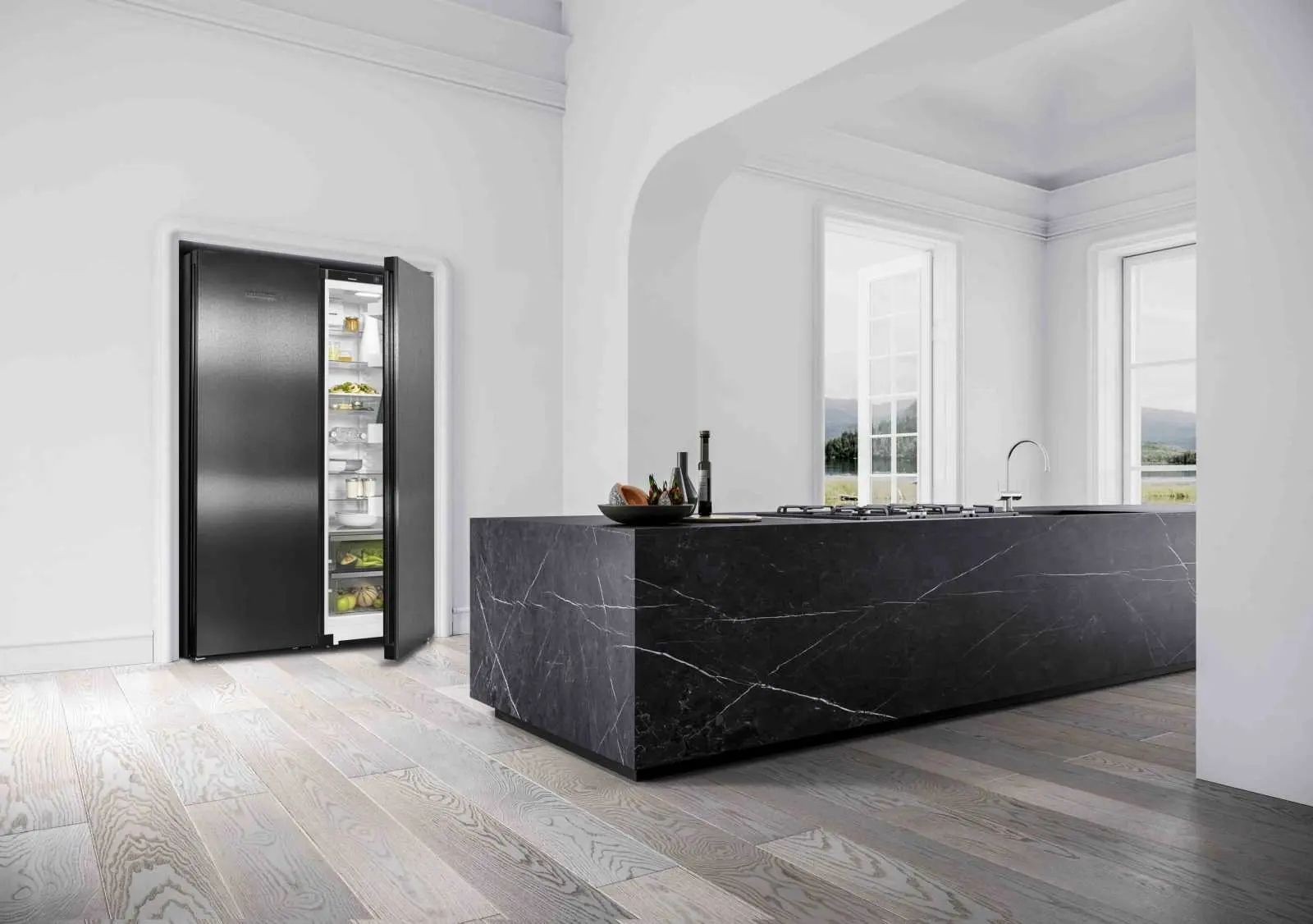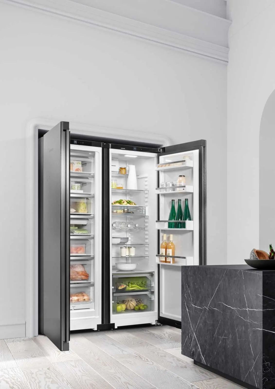 Холодильник Liebherr SBS, 185.5x119.4х67.5, холод.відд.-398л, мороз.відд.-271л, 2дв., A++, NF, диспл внутр., чорний