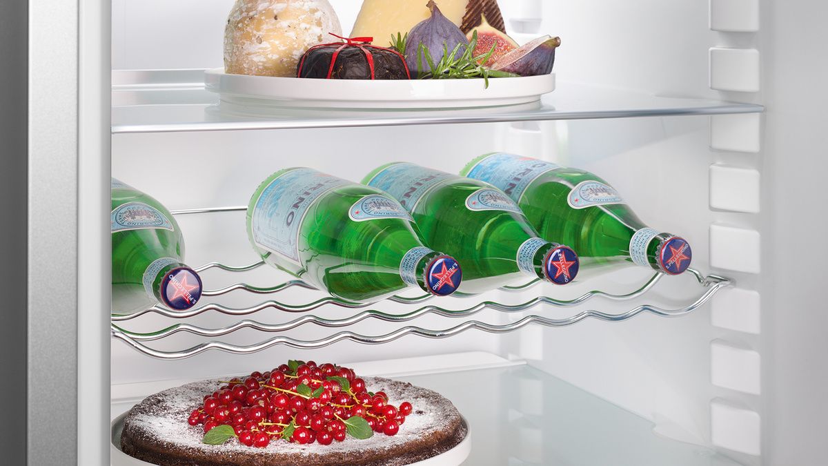 Холодильник Liebherr CUE2831 — компактна та функціональна модель із технологією SmartFrost, яка мінімізує утворення інею та зменшує потребу в розморожуванні. Практична полиця для пляшок економить простір, а контейнери FrostSafe забезпечують тривале збереження холоду завдяки високій закритій конструкції. Система VarioSpace дозволяє зручно витягати контейнери та полиці, створюючи місце для великих продуктів. Прозорі контейнери для овочів місткі, добре проглядаються та легко миються.