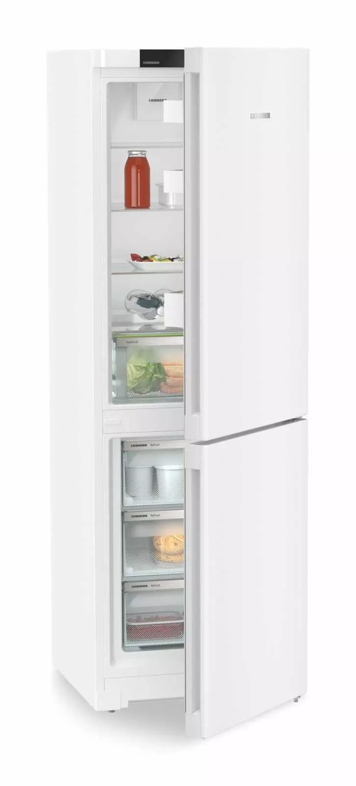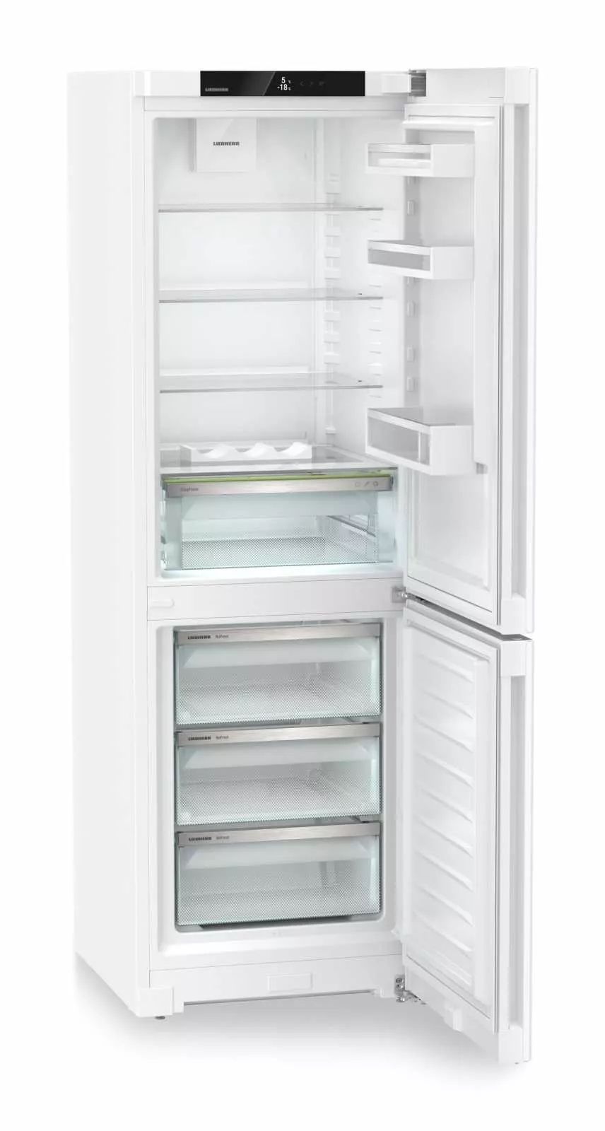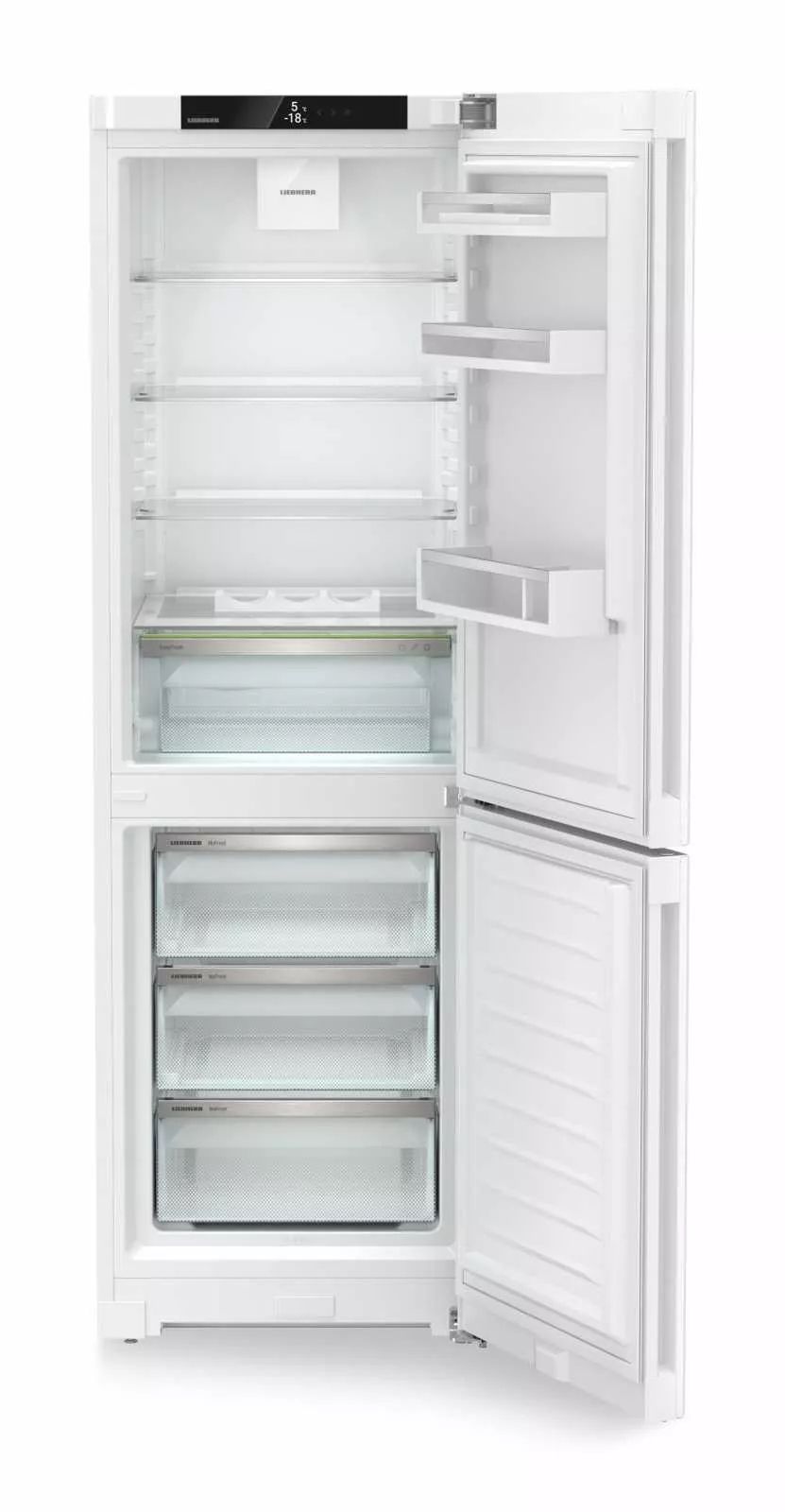 Двокамерний холодильник Liebherr CND5203 — це сучасна модель з об'ємом 319 літрів, яка поєднує в собі високу енергоефективність та інноваційні технології для зберігання продуктів. Холодильник має систему NoFrost, яка усуває потребу в ручному розморожуванні, а технологія DuoCooling забезпечує незалежне керування температурою в холодильній і морозильній камерах, що запобігає змішуванню запахів. Інші корисні функції включають SuperCool і SuperFrost для швидкого охолодження та заморожування, а також відділення EasyFresh, яке зберігає свіжість овочів і фруктів.