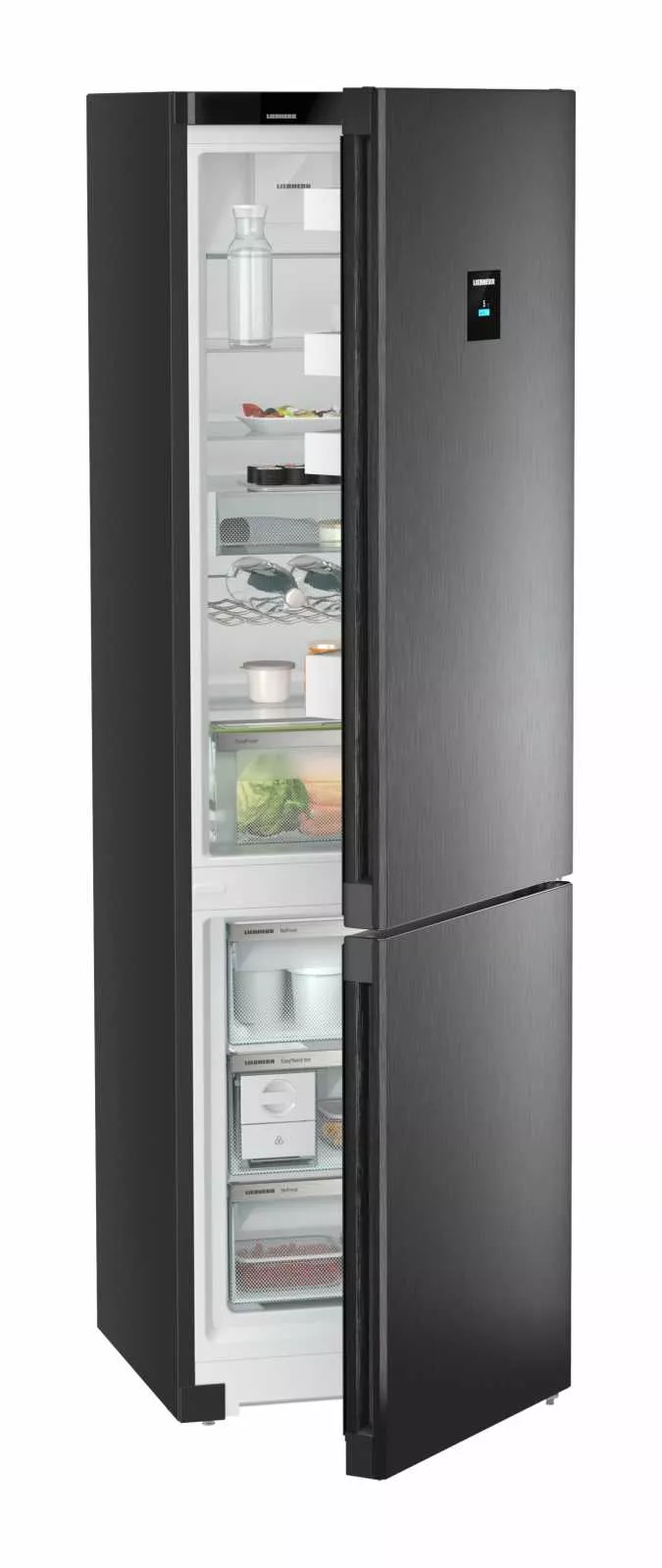 Холодильник Liebherr CNBDC573i — сучасна модель з технологіями BioFresh для збереження свіжості продуктів і NoFrost для запобігання утворенню льоду. Оснащений DuoCooling для незалежного регулювання температури камер та SmartDevice для віддаленого керування. Відділення EasyFresh довго зберігатиме свіжість ваших продуктів. Просторий, енергоефективний, з елегантним чорним дизайном, ідеально підходить для стильного та функціонального інтер'єру.