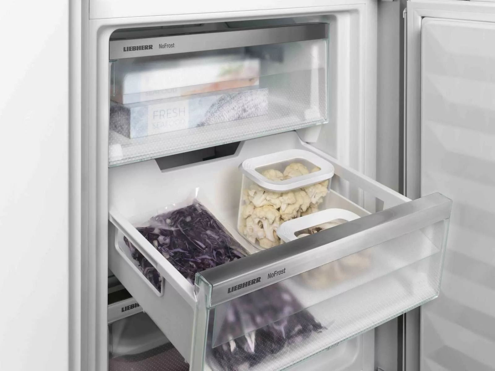 Функції / можливості:2 температурні зони, NoFrost, DuoCooling, VarioSpace, FrostSafe, SuperFrost, SmartSteel, SmartDevice, SuperCool: інтенсивне охолодження, VarioSafe, EasyFresh, Режим «Відпустка», Сигналізація відчинених дверцят у холодильній камері, Сигналізація відчинених дверцят у морозильній камері, BottleTimer, NightMode