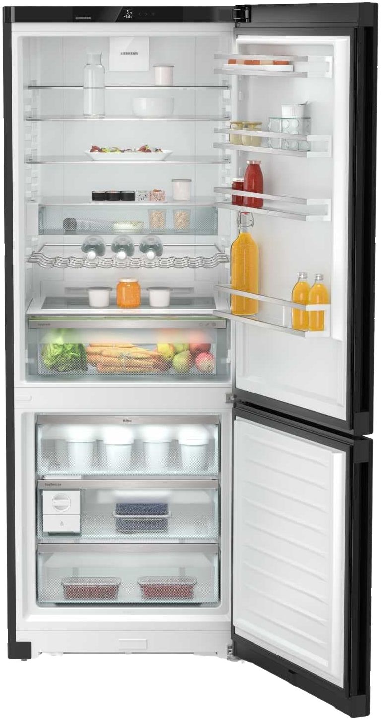 Холодильник Liebherr з нижн. мороз., 201.5x74.7х67.5, холод.відд.-346л, мороз.відд.-128л, 2дв., A++, NF, диспл внутр., чорний
