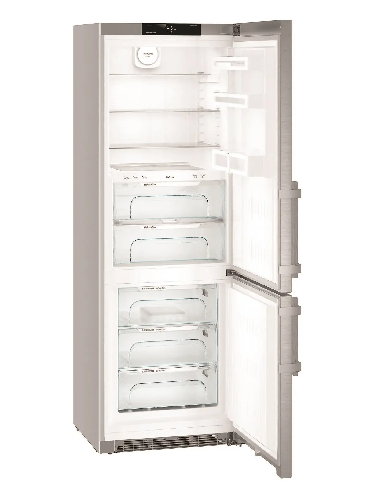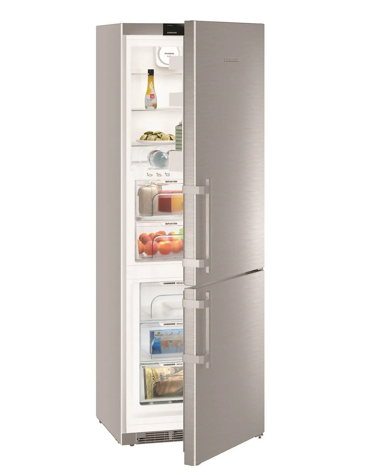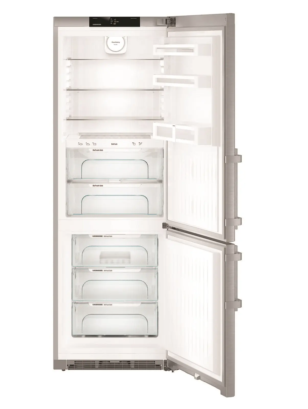 Функції / можливості:Регульовані ніжки, Захист від дітей, NoFrost, DuoCooling, VarioSpace, FrostSafe, SuperFrost, FrostControl, SmartSteel, SmartDevice, BioFresh, Можливість on/off холодильної та морозильної камери, 3 температурні зони, Можливість окремо регулювати температуру в морозильній камері, SuperCool, сигналізація відкритих дверей, попереджувальний сигнал несправності, Індикація температури в холодильній/морозильній камері (внутрішня цифрова)