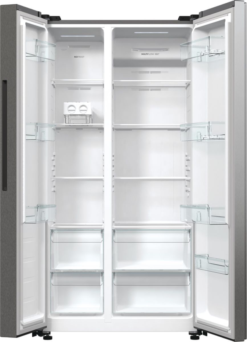 Холодильник SBS Gorenje, 179х67х92см, 2 двері, 356( 191)л, А++, NF+, Інв. , Зона св-ті, Зовн. Диспл, матовий сірий