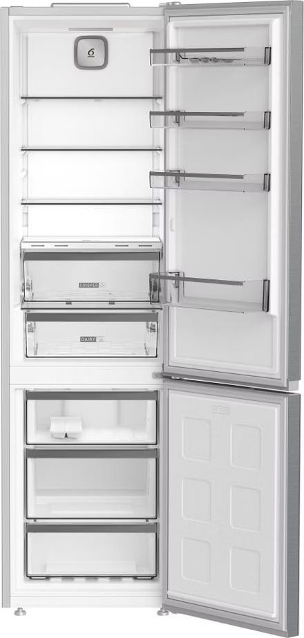 Whirlpool WHK26362XP4U — сучасний холодильник з нижньою морозильною камерою у стильному корпусі з нержавіючої сталі. Загальний об’єм: 210 л холодильної та 104 л морозильної камери — оптимально для родини. Технологія No Frost запобігає утворенню льоду, інверторний компресор працює тихо й економно. Зручний дисплей дозволяє легко контролювати налаштування. Зона нульової температури зберігає свіжість м’яса, риби та овочів довше. Whirlpool — поєднання технологій, економії та елегантного дизайну.