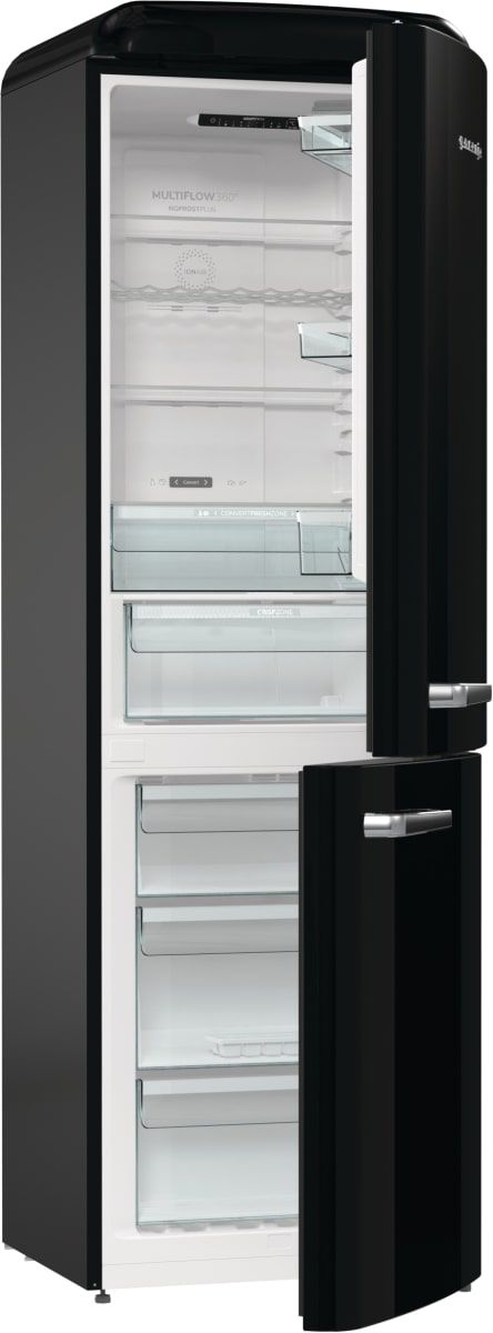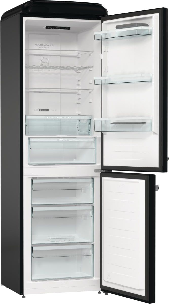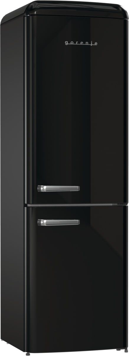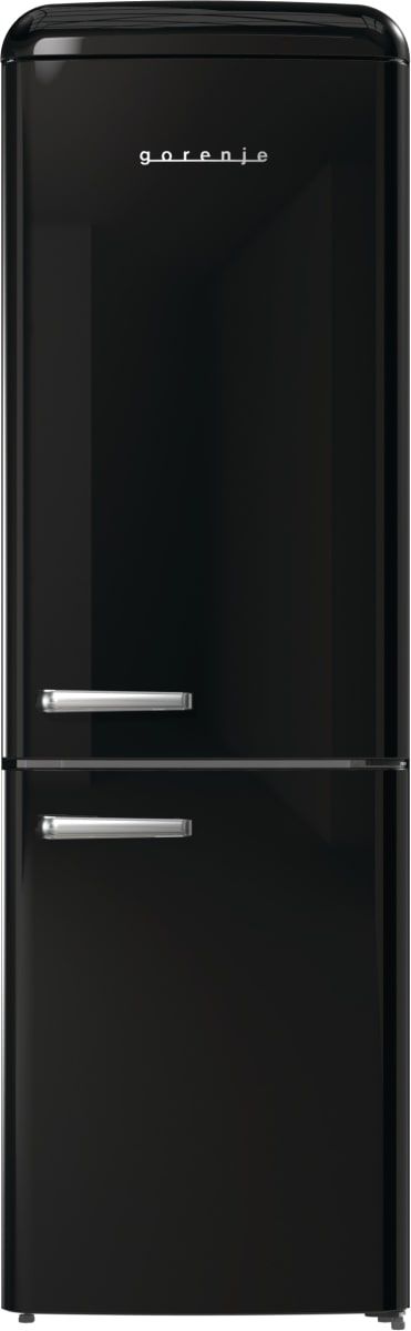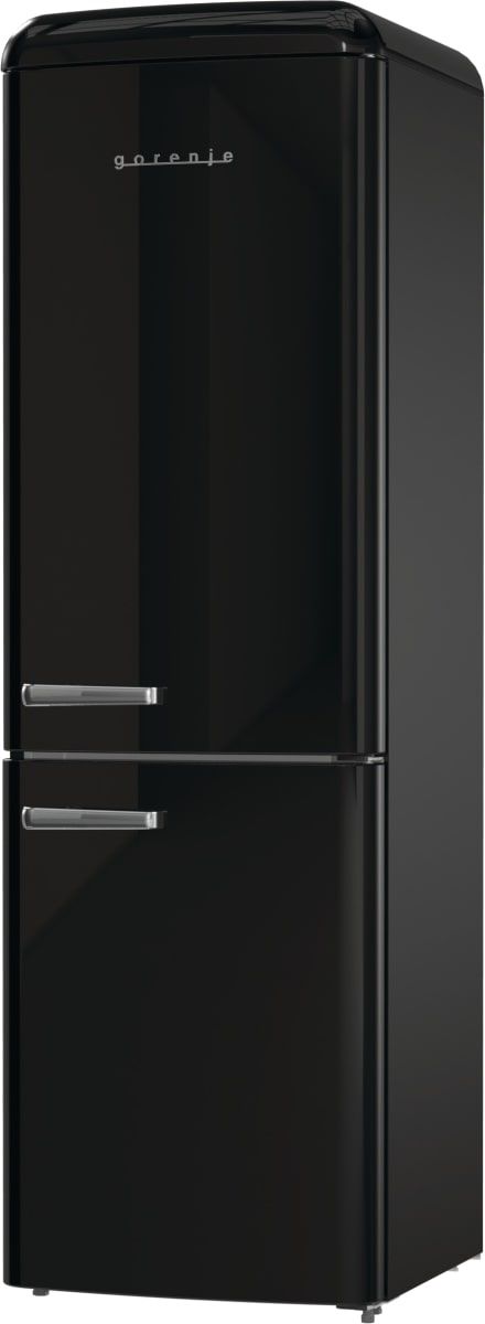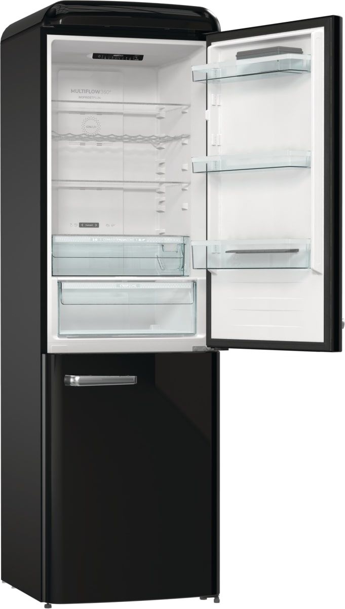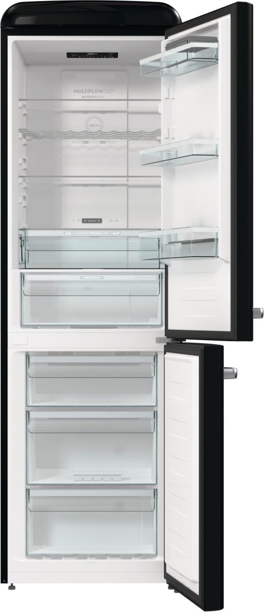 Холодильник з нижн. мороз. камерою Gorenje, 194x66x60см, 2 двері, 204(96)л, А++, Retro, NoFrost+, Внутр. Диспл, Зона св-ті, чорний