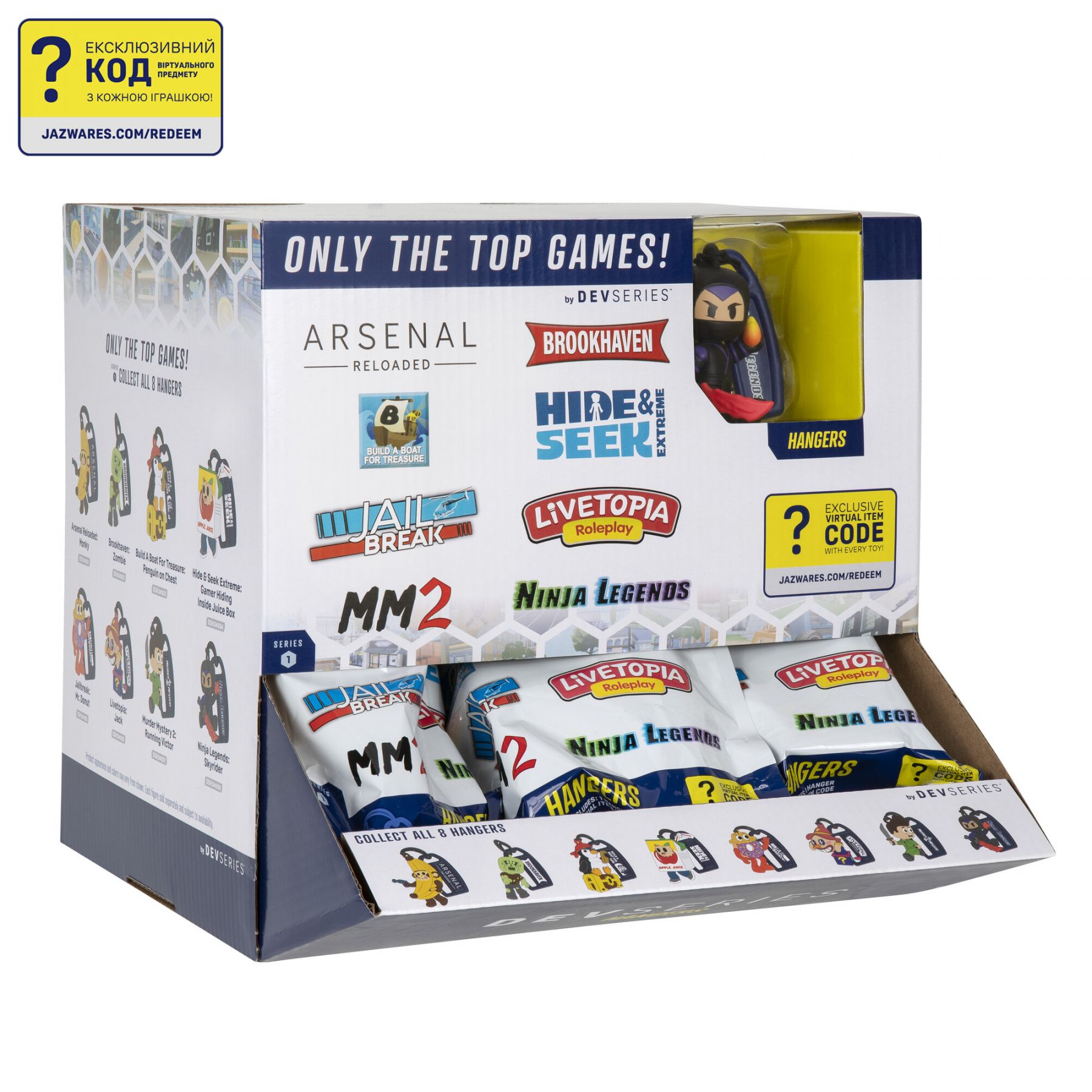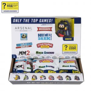 Зустрічайте своїх улюблених ігрових Roblox персонажів з ігровими фігурками-брелками від DevSeries. Упаковка повністю закрита, вміст прихований, котрий з героїв тапиться, сюрприз. Кожне паковання містить одину із восьми 7 сантиметрових фігурок-брелків, найвідоміших ігрових персонажів з топових Roblox ігор: Zombie з Brookhaven, Running Victor із Murder Mystery 2, Mr. Donut із Jailbreak, Monkey із Arsenal Reloaded, Penguin on Chest із Build A Boat For Treasure, Jack із Livetopia, Gamer Hiding Inside Juice Box з Hide and Seek Extreme, і Skyraider із Ninja Legends.