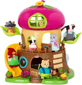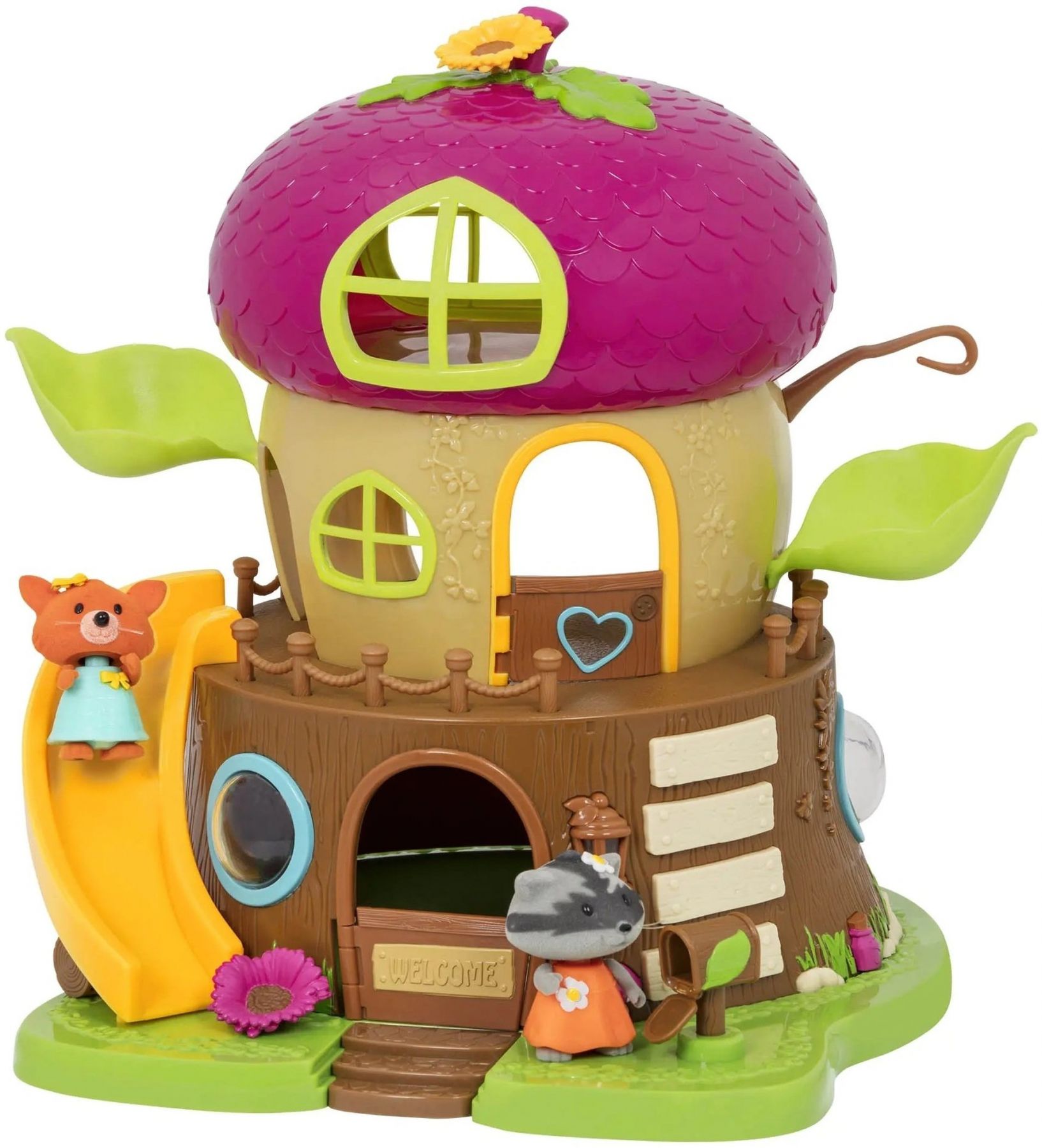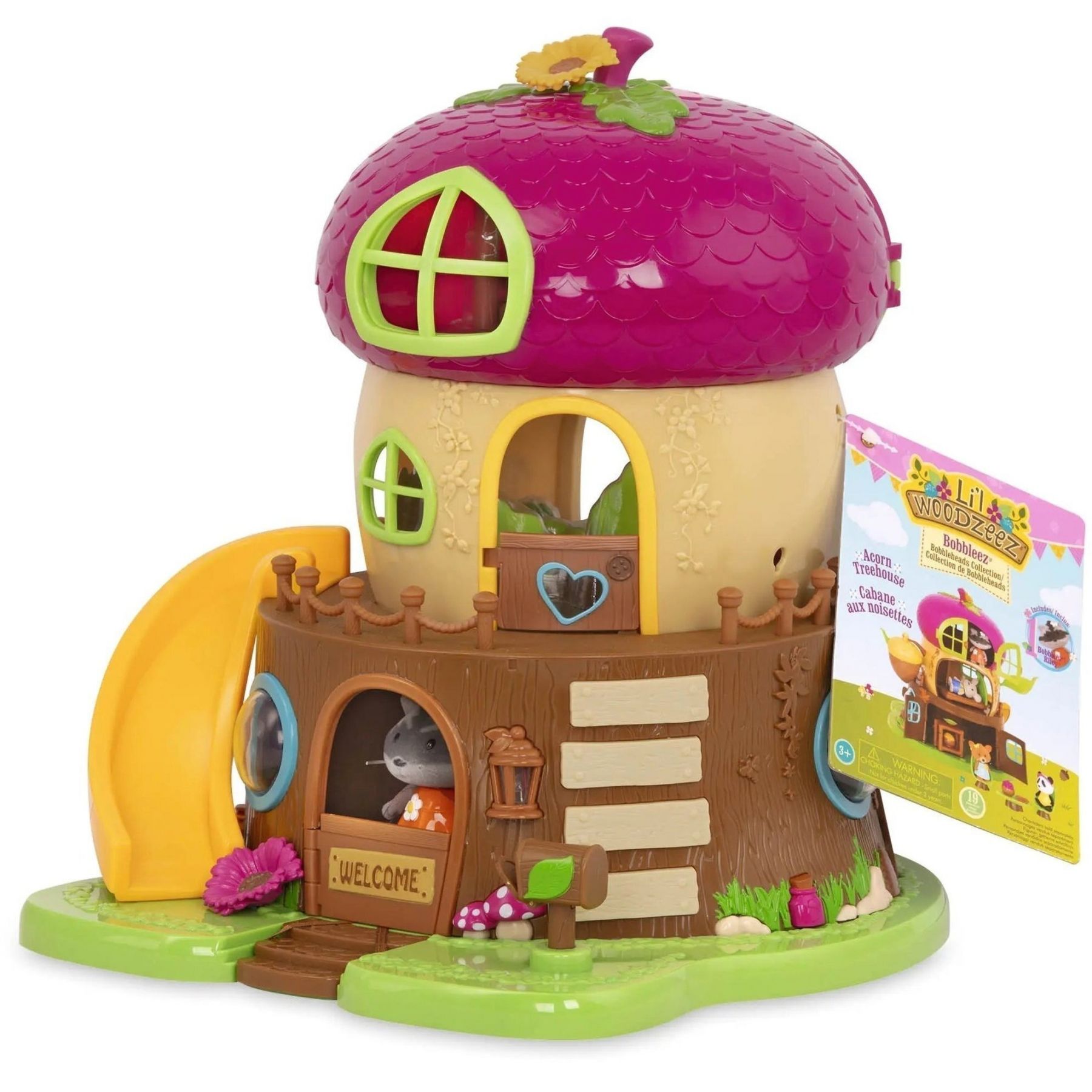 Ласкаво просимо до будиночка на дереві Жолудь! Цей набір з 19 предметів включає барвистий ігровий будиночок, персонажа Bobbleez і безліч аксесуарів. У будиночку на дереві 3 поверхи, так що ваш маленький персонаж може піднятися сходами і ковзати назад гіркою? У нього також є робочі світлодіодні ліхтарі? Ідеально підходить для випадків, коли надворі темно. Усередині багато іграшкових меблів, включаючи ліжко, стіл та стільці.