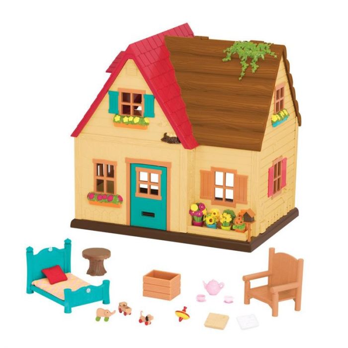 Провести веселе дозвілля зі своєю родиною Li'l Woodzeez можна в новому заміському будиночку. У ньому два поверхи, а на даху є таємна дитяча кімната. У комплекті є одна фігурка й аксесуари для відпочинку, а саме: ліжко, ковдра, подушка, столик, стілець, ящик, іграшки, чайник та чашки тощо. Будиночок можна прикрасити на свій смак і заселити до нього будь-яке сімейство. Цей ігровий набір є ідеальним доповненням до вашого світу Li'l Woodzeez. Іграшка підходить для дітей старше 3 років.
