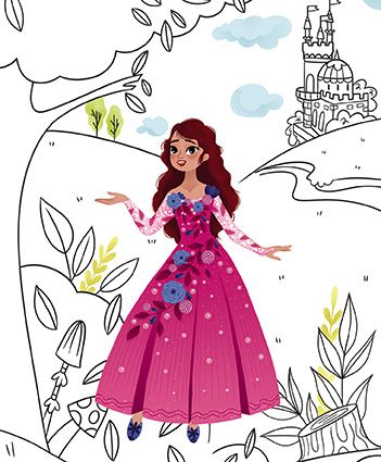Блокнот модні наряди Принцеси від французького бренду Janod - це 18 сторінок креативних розваг для маленьких любителів костюмів з усього світу. На кожній сторінці блокнота персонаж знаходиться на тлі інтер'єрів замку або природи. Цей фон можна розмалювати олівцями або фломастерами відповідно до ваших власних ідей, так як на них розташовані тільки контури кімнат і ландшафтів. У внутрішній частині жорсткого палітурки блокнота є спеціальна "кишеня" для зберігання 5 сторінок з наліпок предметів одягу.