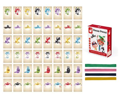 Настільна гра Фокус-покус від французького бренду Janod призначена для дітей у віці від 6 років, кількість гравців: 3-4, тривалість гри: 15 хв. Мета гри - першим вгадати хто ти (відгадати картку, яка розташована у гравця на лобі) або позбутися від усіх своїх карт.
