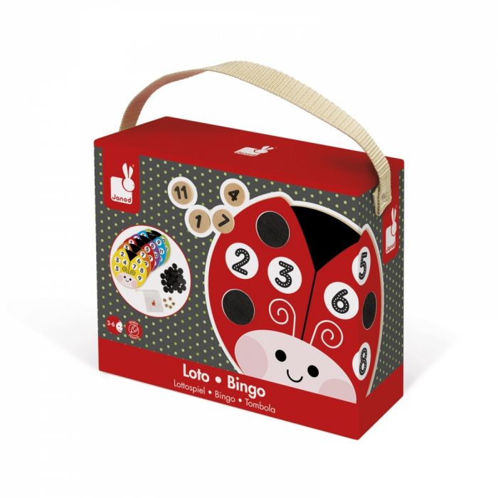 Найпопулярніша гра «Лото» від Janod адаптована спеціально для найменших. У набір входить: 13 пронумерованих фішок, 48 дерев’яних фішок чорного кольору, 6 карток у вигляді сонечок і бавовняний мішечок. Гра розвиватиме кмітливість, швидкість реакції, комунікативні навички. Дерев’яні елементи чудово оброблені і приємні на дотик. Для 2 – 6 гравців. Рекомендований вік: 3+