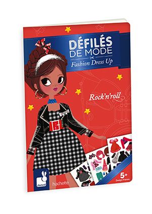 Креативна книга Rock'n'roll fashion show від французького бренду JANOD - це безліч креативних розваг для маленьких меломанів і костюмів, характерних для слухачів різних жанрів, в тому числі джаз, твіст чи диско. Паперова книга містить 4 сторінки, повні наліпок з предметами одягу, серед них кілька наклейок з мерехтливої фольги і одна сторона наклейок з аксесуарами. Крім того, фони на кожній сторінці з персонажами можуть бути пофарбовані відповідно до вашими власними ідеями, тому що вони містять тільки контури місць, клубів або вулиць. Блокнот має невеликий формат, з ним зручно як вдома, так і в дорозі.