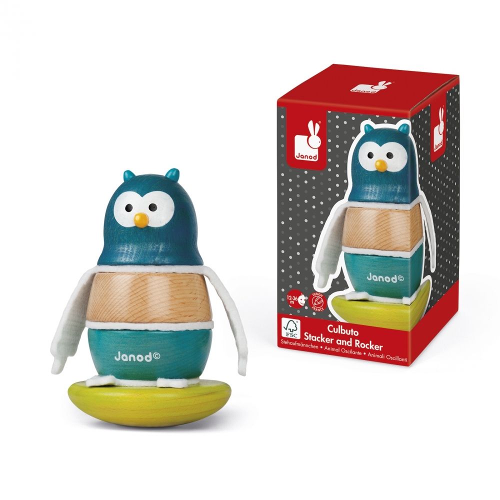 Дерев’яна пірамідка-неваляшка «Сова» від французького виробника Janod. Особливість пірамідки в тому, що вона складається ще й з текстильних елементів (фетру). Із зібраною фігуркою можна вигадувати різноманітні сюжети для історій. Дерев’яні деталі якісно оброблені, вони вкриті нетоксичними і абсолютно безпечними фарбами на водній основі. Розмір іграшки: 9 х 9 х 14,5 см. Для дітей від 1 року.
