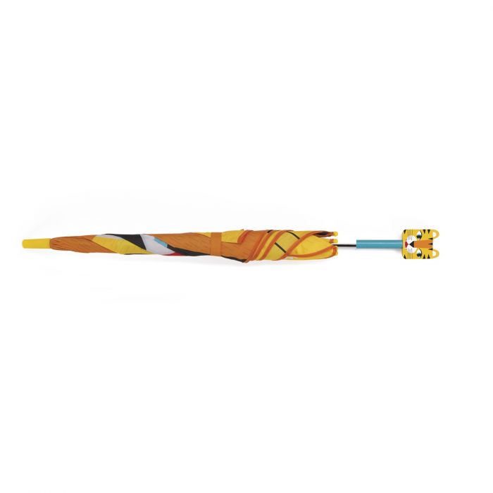 Миле тигреня на куполі яскравої парасольки завжди підійматиме настрій дітлахам у похмуру погоду. Цікавий аксесуар від французького бренду Janod вироблений із високоякісних матеріалів: купол - із нейлону, ручка – із натурального дерева, вона також вироблена у вигляді жовтенького тигреня. Механізм парасольки – автомат, закривається на липучку. Парасолька «Тигреня» підкреслить індивідуальність дитини. Довжина парасольки 72,5 см. Рекомендований вік: 3+