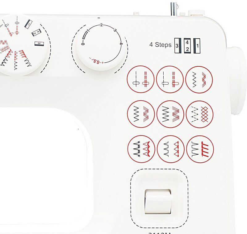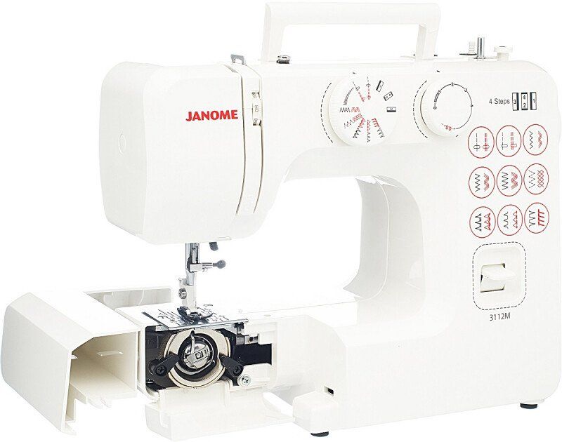 Швейна машина Janome 3112M, електромеханічна, 19 швейних операцій, 60 Вт, петля напівавтомат. Для роботи з різними видами тканин використовується швейна машинка Janome 3112 M. Електромеханічна модель здатна виконувати обметування петлі всього за 4 кроки без обов'язкового повороту тканини. Такий агрегат відноситься до універсальних конструкцій, здатним працювати з різними видами матерій – тонкими, щільними. Особливу увагу виробник приділив використанню надійного вертикального човникового пристрою, що робить дану машинку однією з найпростіших і легких в експлуатації. Для просування тканини застосовується посилена рейка і потужний двигун, який дозволяє впоратися навіть з щільним джинсом. Для виконання закріпки строчки розробники доповнили агрегат клавішею зворотного ходу голки. Щоб не витрачати час на підготовку машинки до певного робочого процесу, доцільно скористатися системою швидкої заміни лапки і автоматичним відключенням намотчика шпулі. Надійність техніки підтверджується якісними і міцними матеріалами, з яких вона була зібрана. Наявність металевої каркасної частини дозволяє експлуатувати машинку на високих швидкостях. Всі елементи керування разом з підказками розташовані на рівні очей майстра. Прошиваючі матеріали: для трикотажу, застосування: побутові.