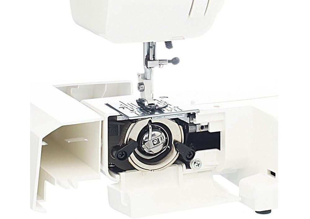 Комплектація:інструкція, Набір голок, Шпульки, Лапка для напівавтоматичного обкидання петлі, Розпорювач, Лапка для блискавок, Швейна машина, Лапка для шиття, Лапка для потайного шву, Лапка універсальна