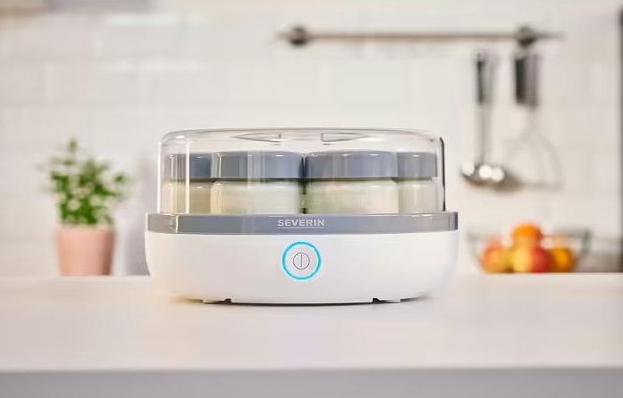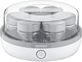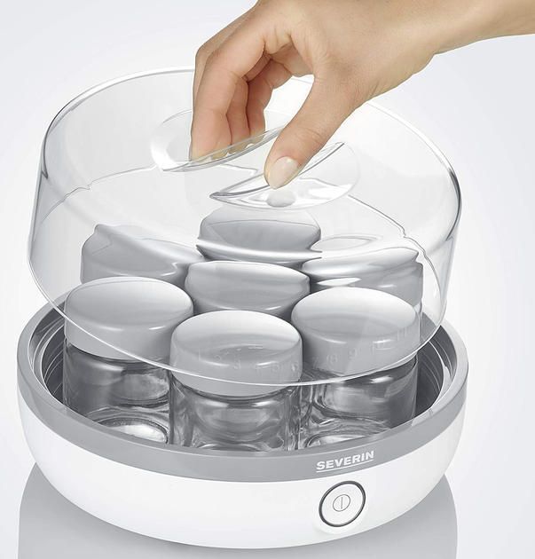 Створюйте натуральний йогурт без консервантів прямо вдома! Йогуртниця Severin оснащена 7 скляними банками по 150 мл, що можна мити в посудомийці. Підходить для грецького йогурту. Має прозору кришку, підсвічений вимикач, нековзні ніжки й відсік для змотування кабелю.