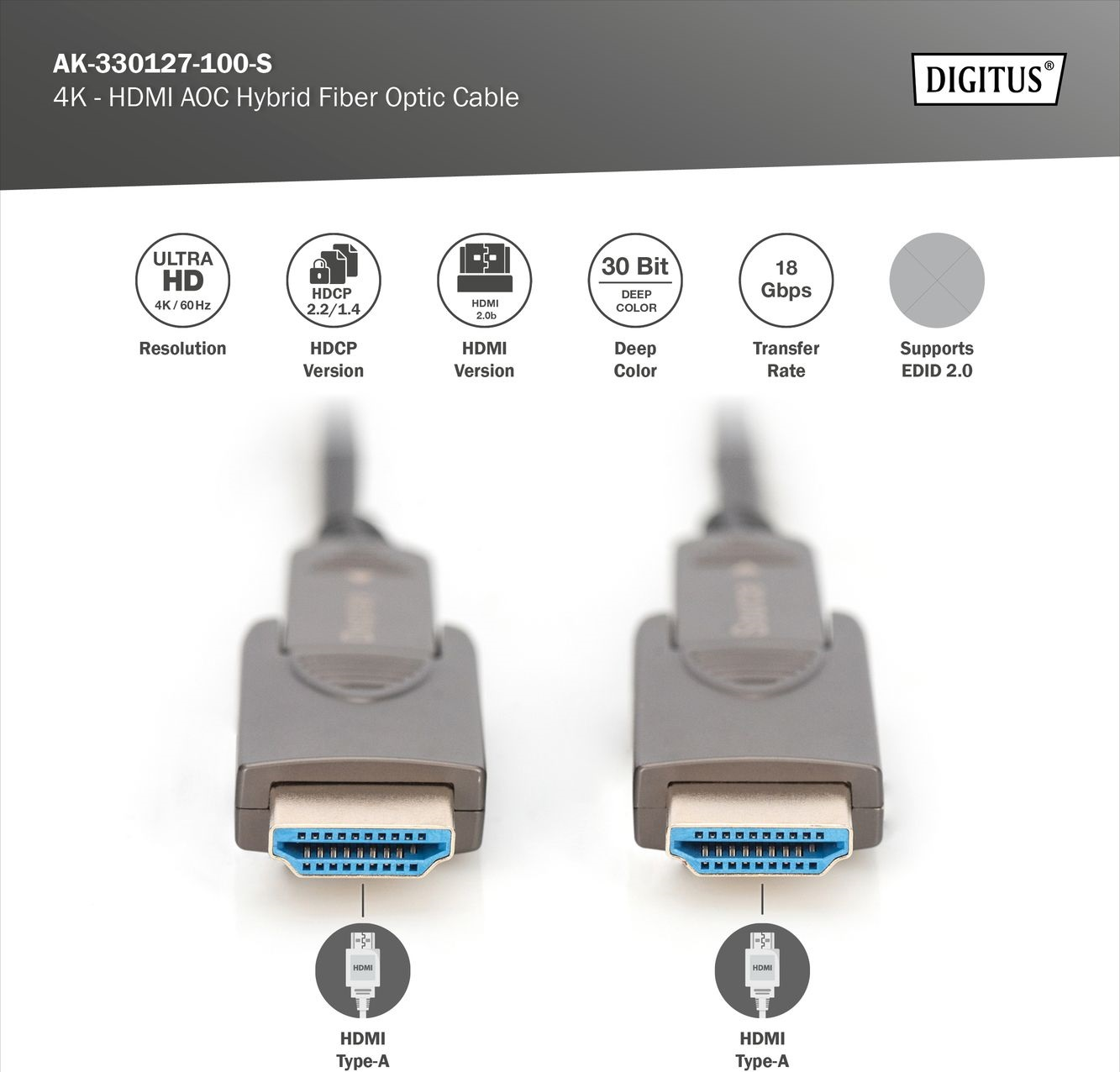Кабель DIGITUS HDMI (M/M), 4K, AOC, 10м, чорний